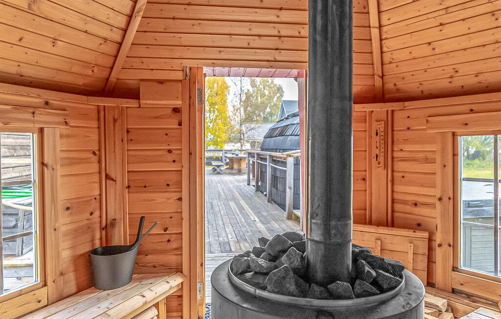 Nyd en afslappende og aktiv ferie i dette smukke feriehus med sauna og spabad i en førsteklasses beliggenhed. Dette rummelige feriehus byder jer velkommen med rustik komfort og tilbyder masser af plads til at lægge hverdagen bag jer under en sjov ferie med venner eller familie. Glæd jer til muntre måltider og hyggelige spilleaftener i spiseområdet med træpaneler, stream en film, som alle nyder, eller fordyb jer i jeres ferielæsning. På solrige dage kan I servere morgenmad og lækre grillretter på den åbne terrasse. Lad børnene boltre sig på den rummelige grund, mens I forkæler jer selv med afslappende øjeblikke i den brændeopvarmede sauna eller det udendørs spabad. Pak en picnickurv og gå en tur til den nærliggende sø, hvor I kan svømme eller prøve lykken med at fiske. Oplev det vilde, uberørte landskab på velafmærkede vandrestier. Besøg den samiske landsby Lappstaden og tag en eventyrlig hundeslædetur gennem de sneklædte skove i Arvidsjaur om vinteren.