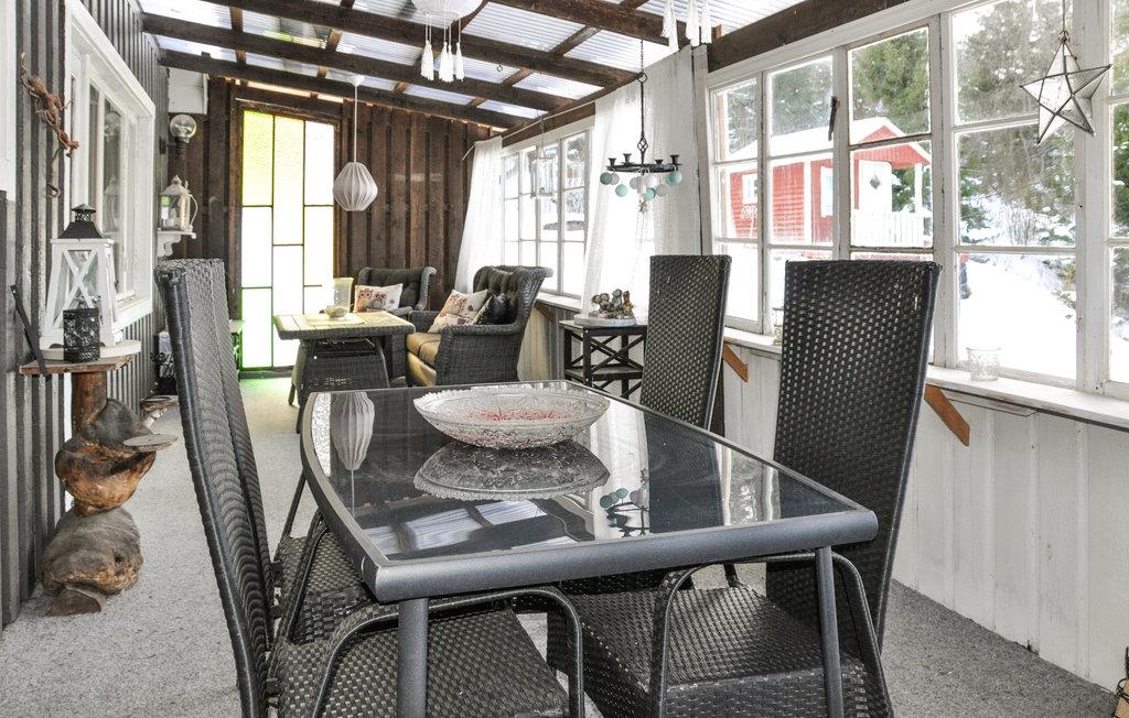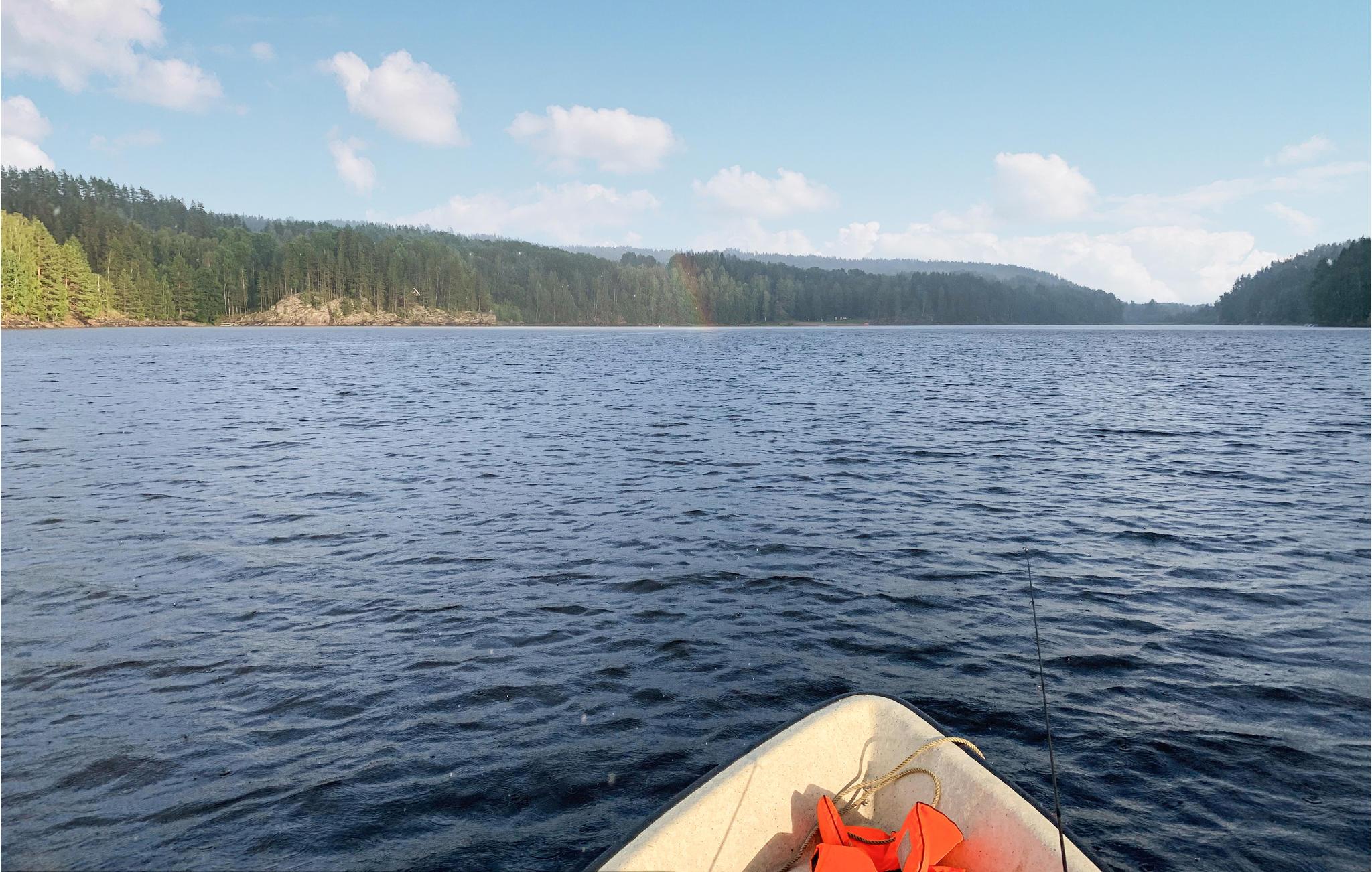 Foretrækker I en ferieblanding af vandreture, fisketure og badesjov, skal I holde ferie her. Dette feriehus lover en lykkelig familietid omgivet af dejlig natur. Lav jeres madpakke til dagens fisketur i køkkenet tidligt om morgenen. Nu ud i naturen! Nyd den utrolige stilhed, mens I fisker, og spis jeres madpakke i robåden. Tag den friske fisk med hjem og kog den op på den udendørs stengrill, mens børnene leger mærkespil på græsplænen. Sofaen inviterer børnene til at se en film, og resten af ??familien kan sludre over et godt glas vin på den overdækkede terrasse.