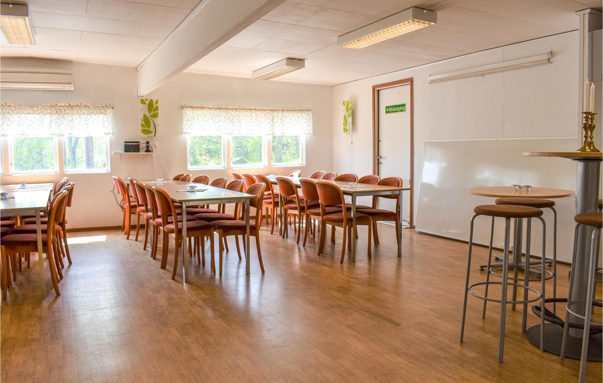 Denne feriehytte ligger på en stor grund med flere huse. Det praktiske feriehus byder på flere funktionelle soveværelser med en række sovepladser, så I kan rejse med hele den store familie. I opholdsrummet er der et tekøkken, hvor I kan brygge jeres morgenkaffe. Derudover er der god plads og et stort køkken i fælleslokalerne, hvor I kan tilberede jeres måltider og derefter dække op i den store stue, så I kan være samlet med hele gruppen. I finder også badeværelser der, som I kan bruge. I det store udendørsområde er der en fælles pool, som blievr opvarmet af solen.