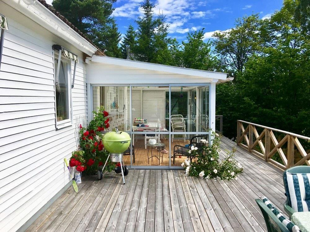 Sommerhus med søudsigt i fantastisk beliggenhed ved den store sø Vättern, nær Askersund – med skøn terrasse og vinterhave. Sommerhuset Forsanäset ligger på en cirka 1.500 m² stor grund i sydvestvendt skråning ved søen Vättern, som er Sveriges næststørste sø. Der er kun 100 m til den nærmeste badebro, som deles med naboen, og 200 m til en børnevenlig sandstrand. Omkring 250 m fra huset finder du flotte badeklipper med panoramaudsigt over Vättern. Den nærmeste indkøbsmulighed er i Nykyrka, cirka 12 km væk. Til Askersund er der cirka 20 km, og til Motala cirka 30 km.