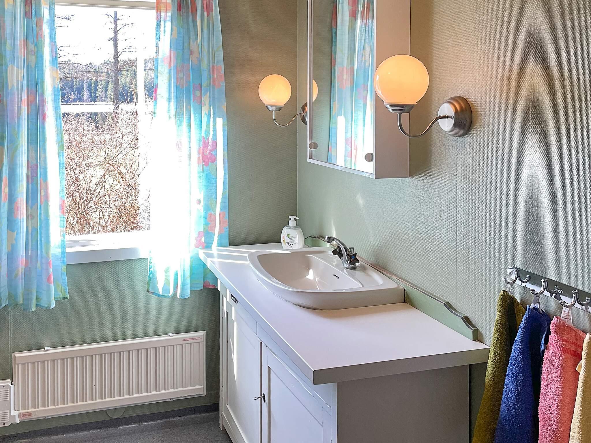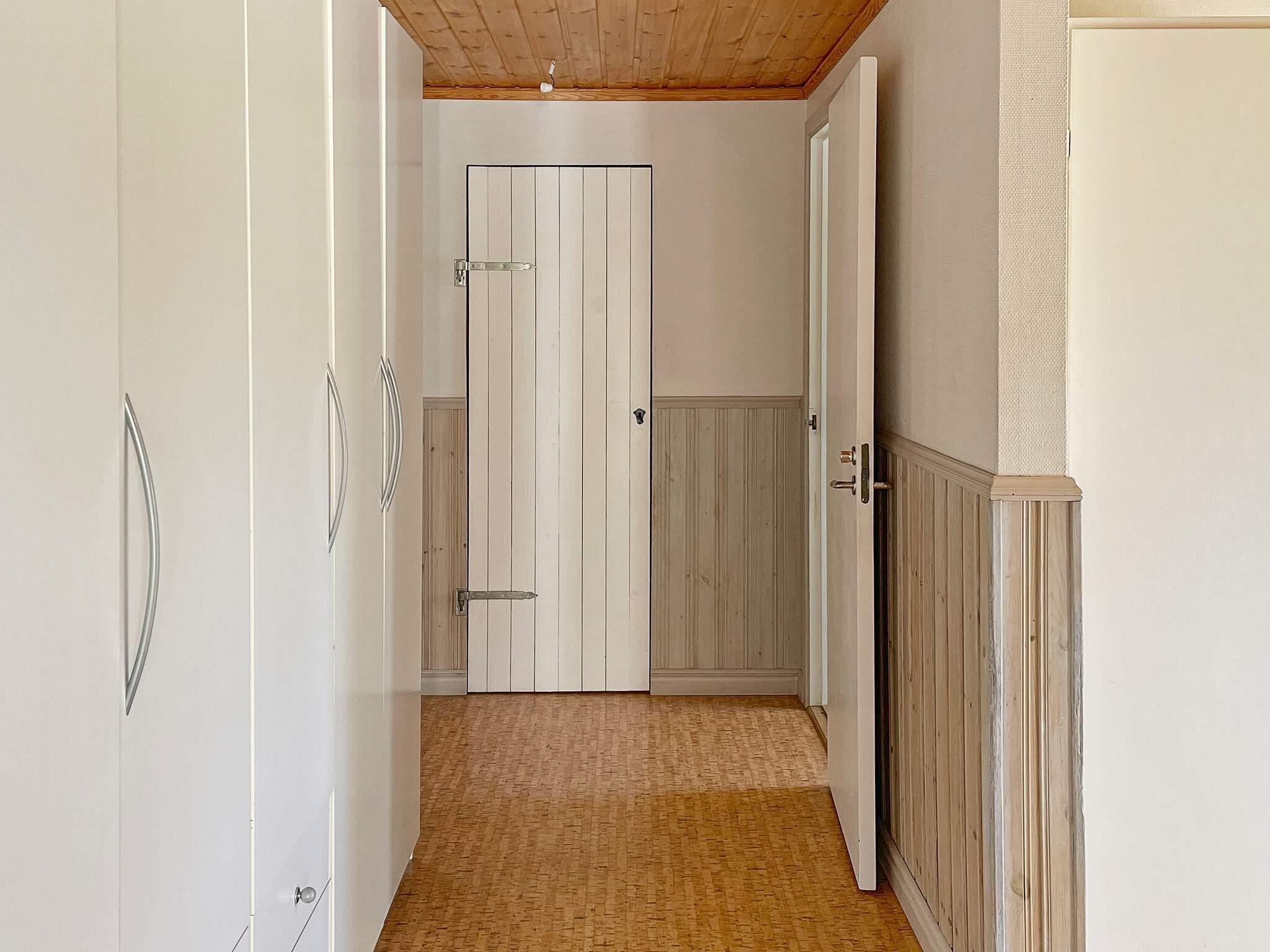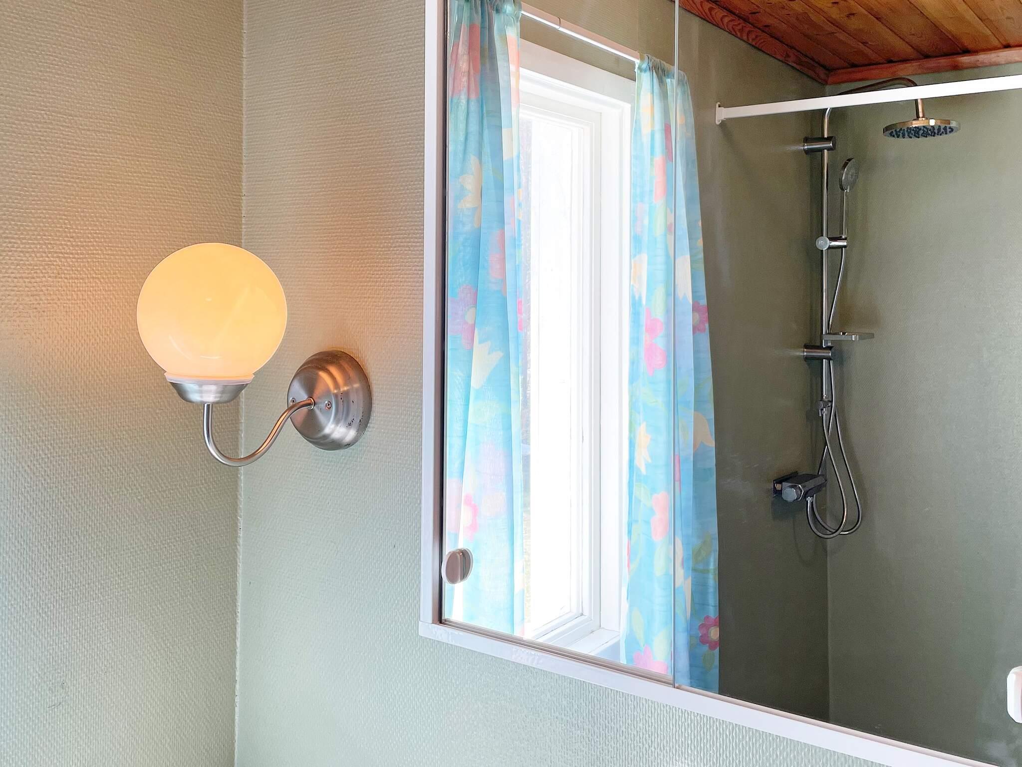 Stugan har tre separata sovrum samt badrum utrustat med dusch och en tvättmaskin som finns i anslutning till entren.