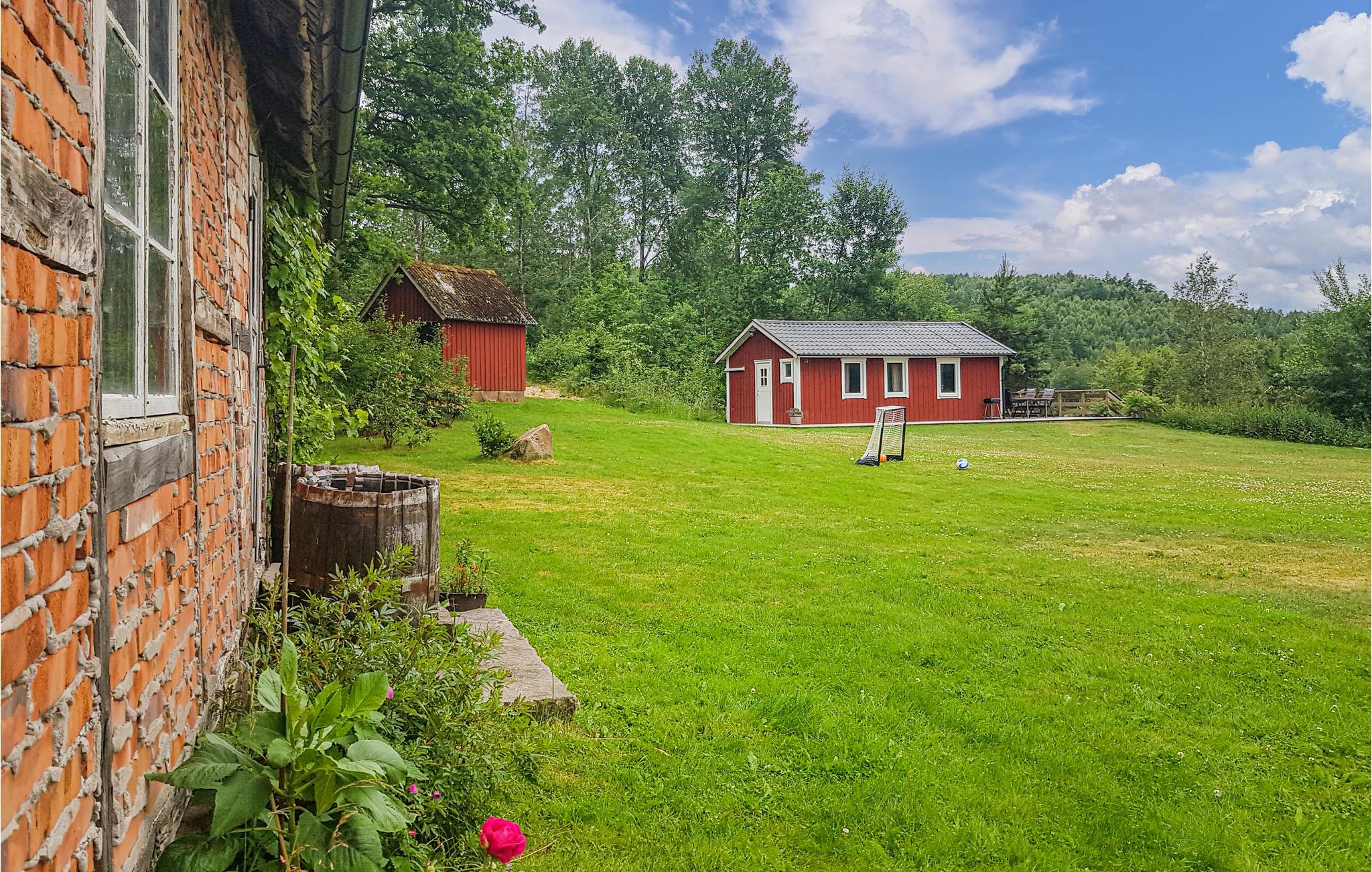 Huset ligger tæt på Ätraforsdammen, hvor I kan fiske og svømme. Der er cirka 30 minutter i bil til Falkenberg og havet. Hvis I har lyst til at shoppe, er der 20 minutter til det berømte stormagasin i Ullared. Ejendommen ligger desuden på "Hallands smukkeste gade" for cykel- og vandreentusiaster. En 17 km lang landevej langs vandet fører til landsbyen Gällared.