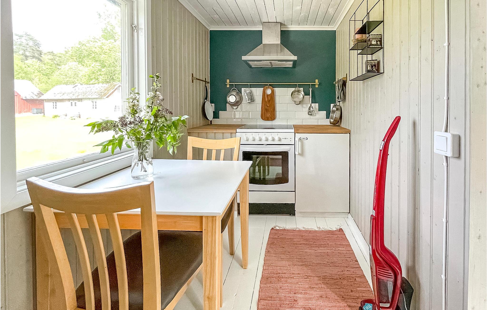 Huset byder på alt, hvad I behøver til en perfekt ferie - dejligt køkken, hyggelige opholdsstuer med fem senge og et badeværelse med bruser.