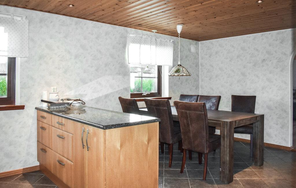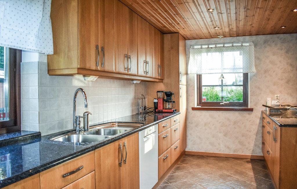 Et stenkast fra en udendørs pool indbyder dette store feriehus omgivet af grønne marker på en kæmpe åben grund til en sjov ferie. Dette rummelige hjem tilbyder en række fordele og plads til to familier, der rejser sammen. Tag det nybagte brød ud af ovnen og sæt jer ned ved det massive træbord i det flisebelagte spisekøkken. Gå en tur på landet og køb friskrøget fisk til frokosten i fiskerøgeriet på naboejendommen. Hop ind i den solopvarmede pool med poolovertræk og køl ned i det dejlige vand. Nyd en lækker grill på den overdækkede terrasse og spil et brætspil foran den norske pejs, mens I taler om morgendagens cykelrute. Gå en tur om aftenen og gør jer godt tilpas i den store hjørnesofa.