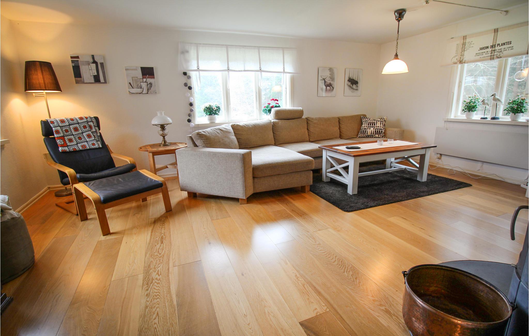 Dette feriehus ligger i en fantastisk beliggenhed omgivet af natur, og tilbyder med sine lyse og komfortable værelser de ideelle rammer for en afslappende ferie. Nyd tiden sammen, om aftenen kan I sidde sammen i den indbydende sofa, se en film sammen eller blot snakke længe, ??mens flammerne knitrer behageligt i brændeovnen.