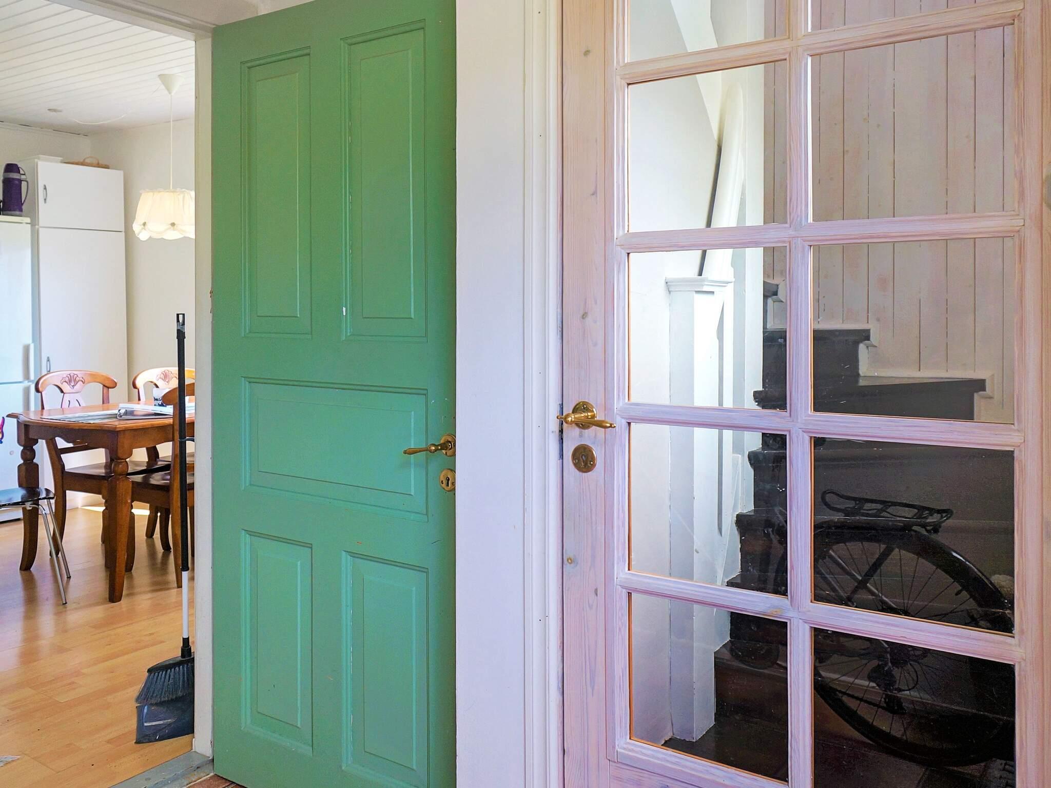 Man välkomnas in direkt via en mindre hall. Du kommer rakt in i köket med matplats för 4-6 personer. Här finns också ingång till badrummet med wc och dusch. Till vänster kommer man in ett ljus rum med matbord för 6-8 personer och ett valv in till vardagsrummet med skön soffa och tv. Utanför fönstret ser man poolen och den härliga trädgården.