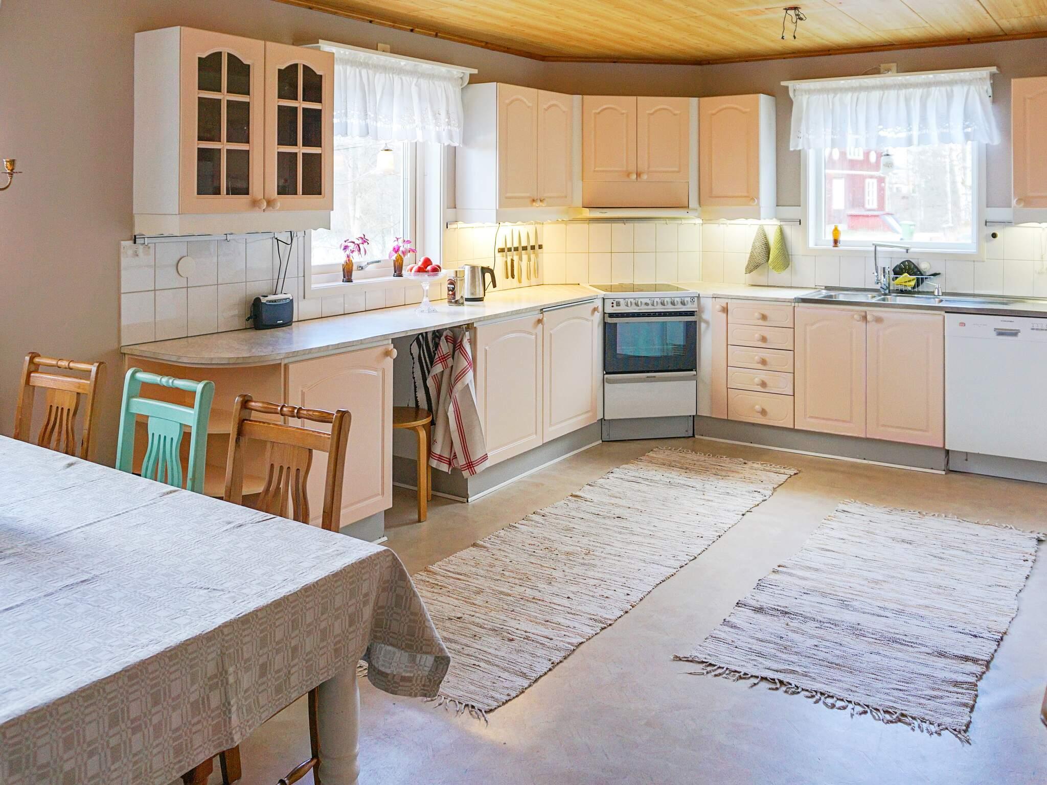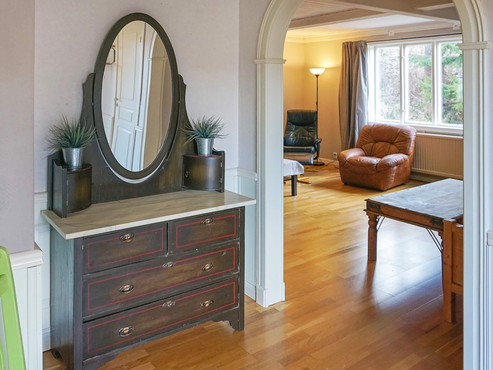 Du välkomnas av en liten veranda som leder direkt in i en hall, till vänster om hallen finns ett stort rymligt lantligt kök med matplats för 6 personer där finns allt du kan behöva. Till höger om köket finns två sovrum i det ena finns dubbelsäng och garderober, i det andra sovrummet finns en enkelsäng det sovrummet leder vidare till vardagsrummet där finns ingen dörr, dörr mot köket finns. Till höger från hallen har du badrum med dusch och toalett, ett stort härligt vardagsrum med en bäddsoffa och tv, ett litet kontor, dörr som leder ut till baksidan av huset där finns en stor altan med utemöbler där man kan umgås och grilla gott. Runt hela huset finns gräsmatta att springa runt och leka på. I källaren finns tvättstuga med tvättmaskin och torktumlare, där finns även en barnstol och barnsäng att låna.