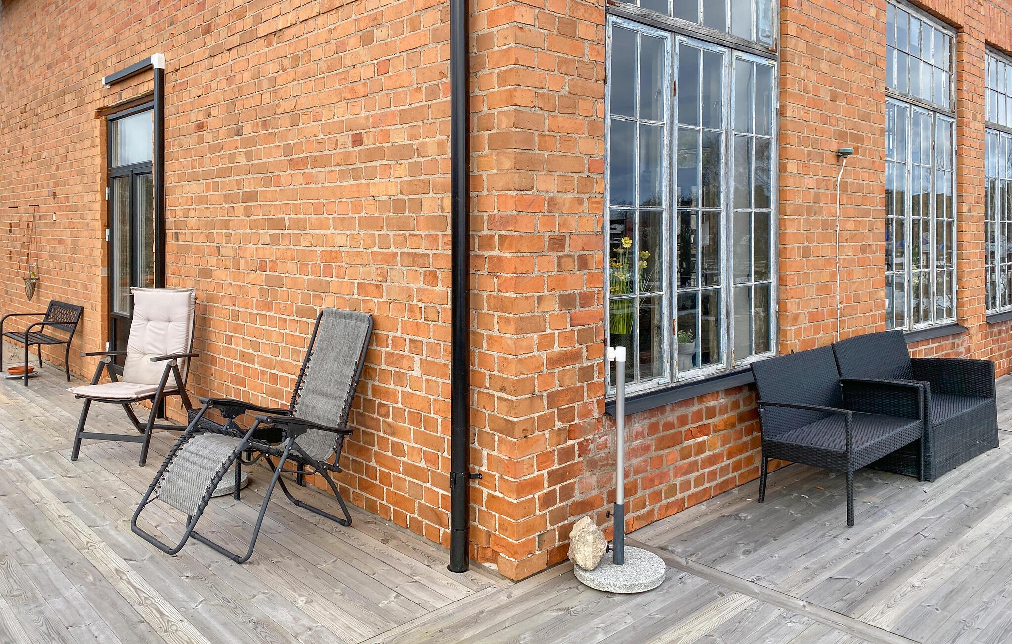 Træd ud på den store terrasse, som er udstyret med siddepladser, og nyd den direkte udsigt over vandet. Spis jeres morgenmad udendørs eller observer det rolige liv i det omkringliggende landskab.