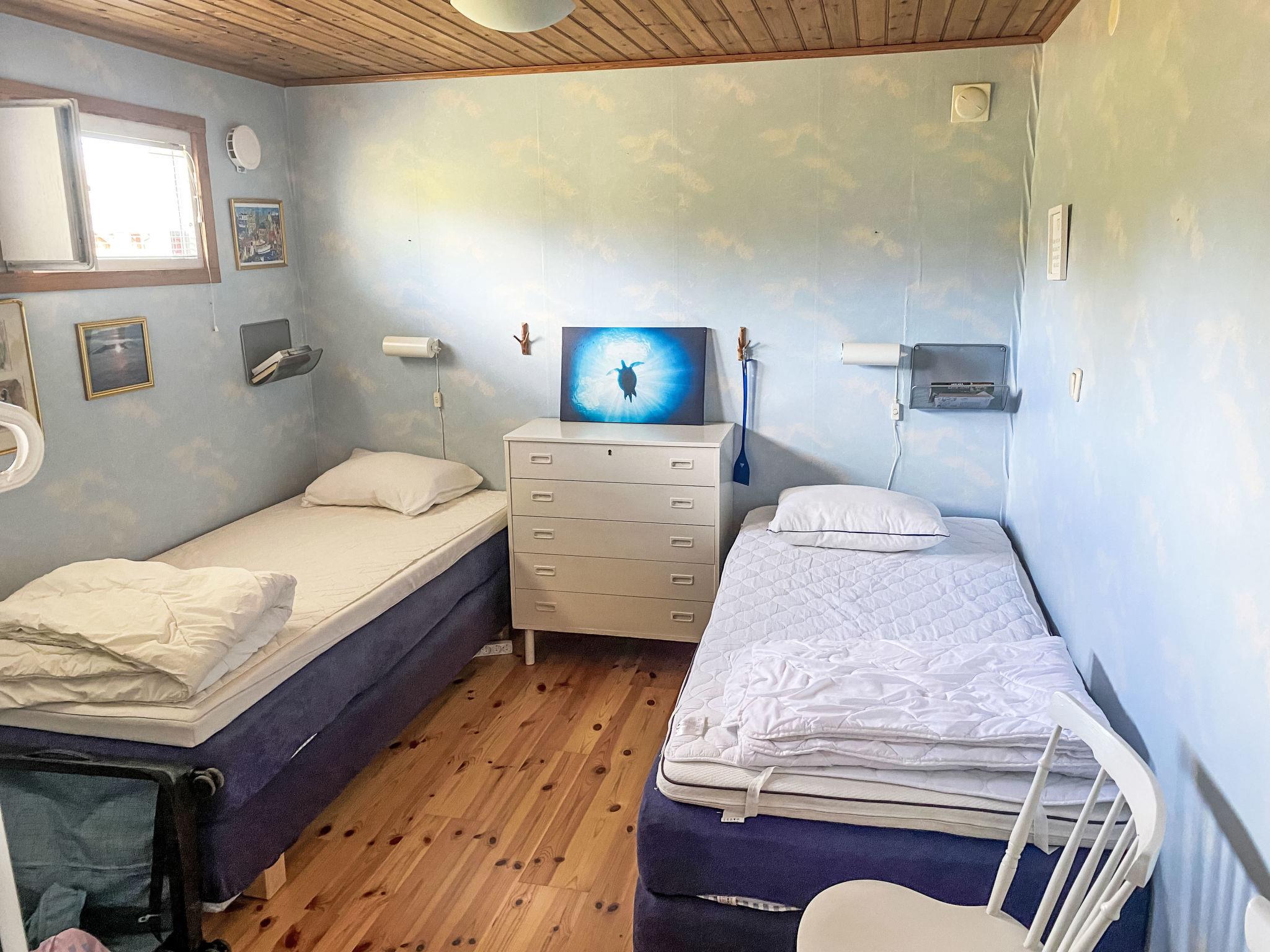 "Havstomten", 4-room house 75 m2. Practical and comfortable furnishings: living room with Scandinavian wood stove and TV (flat screen). 2 rooms, each room with 2 beds (90 cm, length 200 cm). 1 double bedroom with 2 beds (90 cm, length 200 cm). Open kitchen (oven, 4 ceramic glass hob hotplates, toaster, kettle, microwave, freezer, electric coffee machine) with dining table. Shower/WC. Electric heating, wood heating. Wooden floors, parquet floors. Terrace 15 m2, roofed. Terrace furniture, barbecue (portable). Beautiful panoramic view of the sea. Facilities: washing machine. Please note: one double bedroom is outside the apartment. Smoke alarm, fire extinguisher.