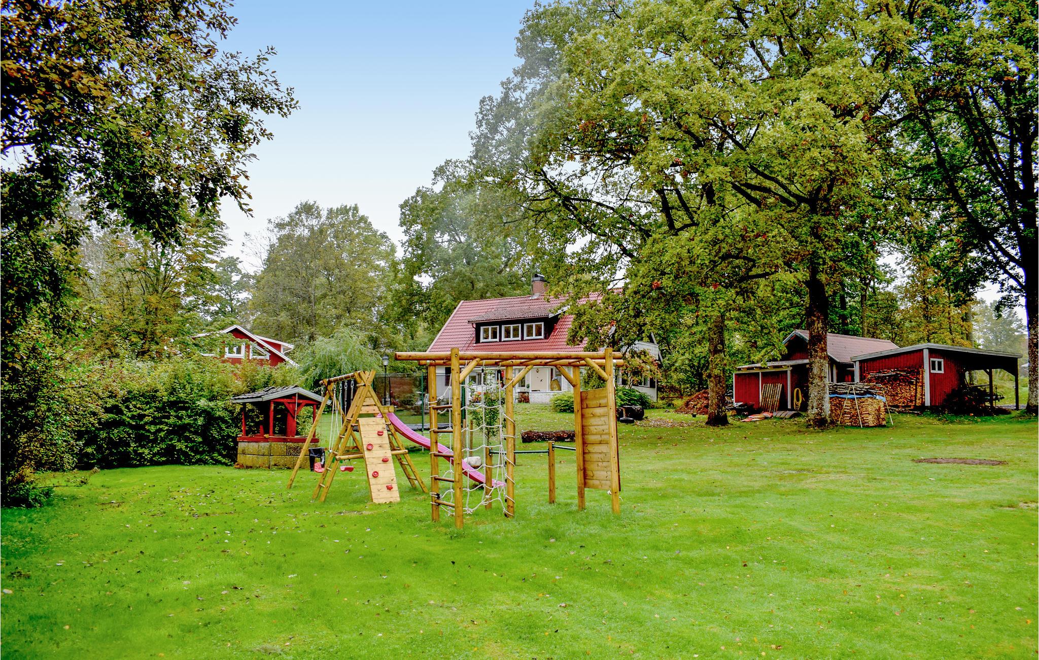 Kun 150 m fra søen Bolmen, ligger dette hyggelige hus i Österås, med to terrasser i hver sin retning og en carport. På grunden er der god plads til leg og boldspil, legehus, gynger og en trampolin. Huset ligger i Bolmsö 20 km fra Ljungby i Småland. Bolmsö er landfast via bro og fra øens nordlige spids, går der færge til Sunnaryd. Ved broen ligger husets båd med elmotor, ligesom I kan leje tre kajakker. Der er landhandel på Bolmsö hvor I kan købe fiskekort. Der er mange genbrugs- og antikvitetsbutikker. I Ljungby er der mange museer, restauranter og butikker.