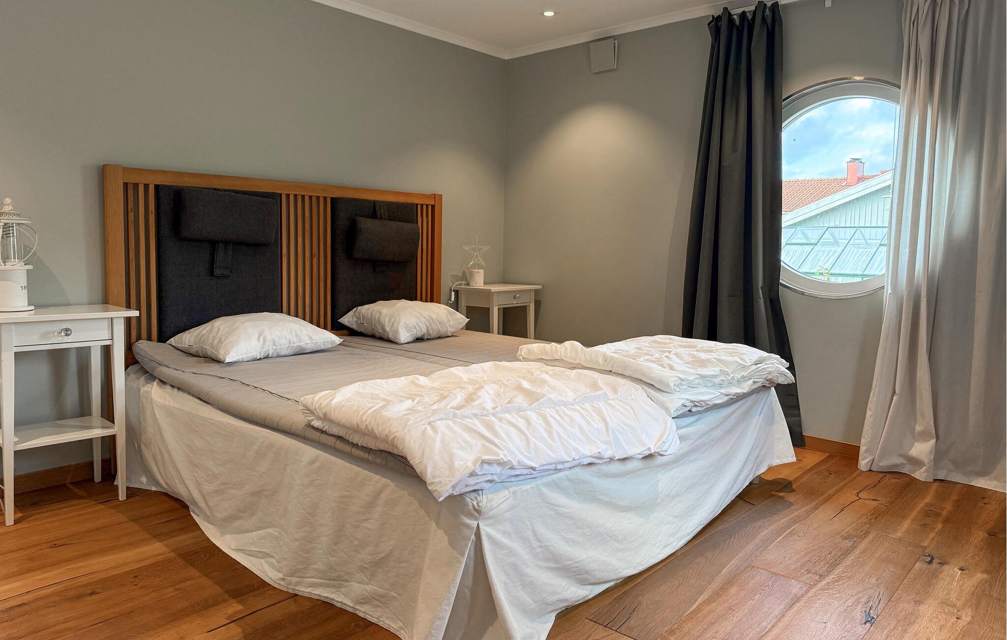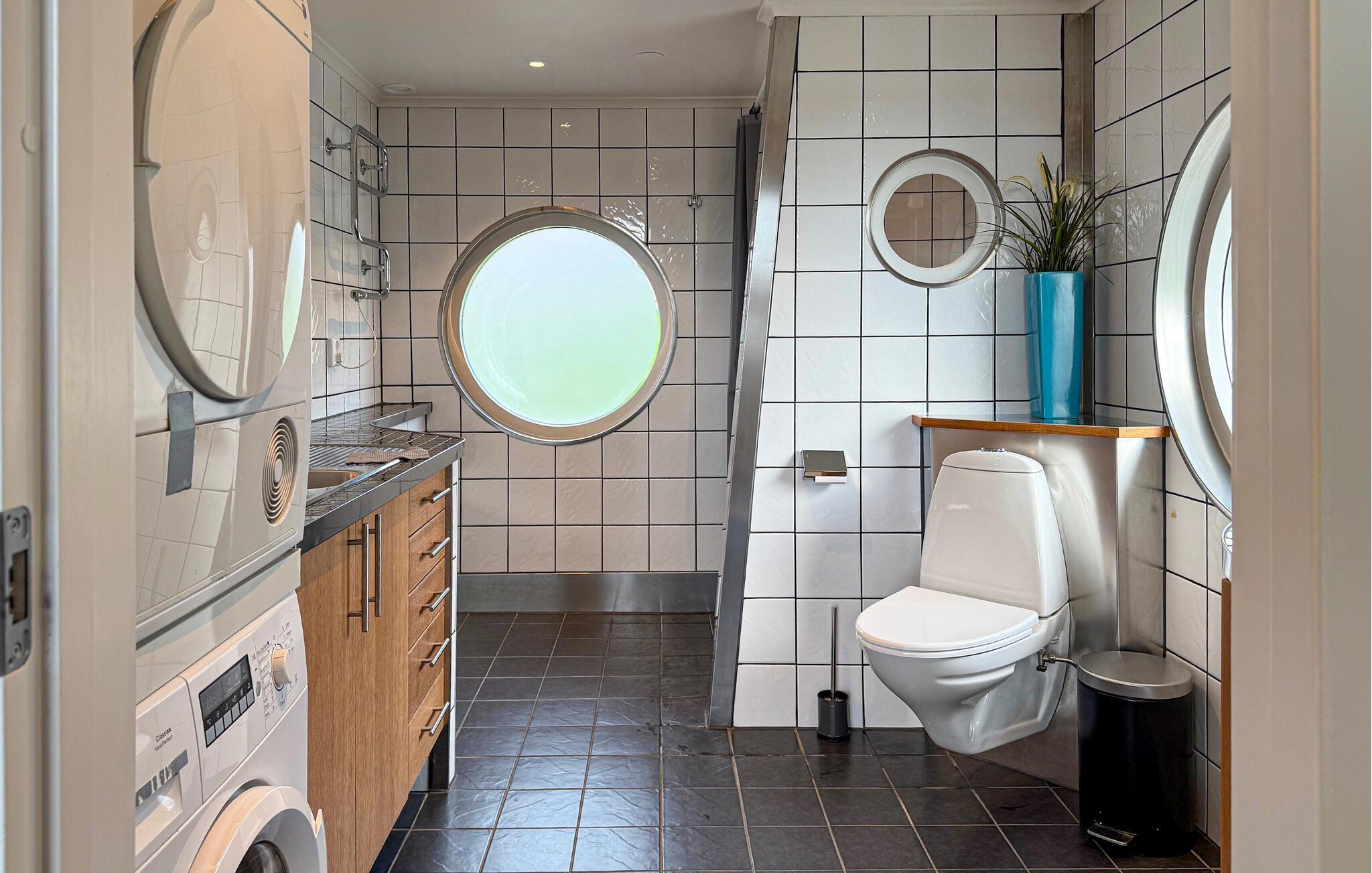 Dette smukke, arkitekttegnede og originale hus, findes der kun ét af. Rundt om huset er en terrassen som dækket af skibet, med gelænder som ræling og med en dejlig udsigt over Rasjön. Inde i bygningen bliver man mødt af trægulve, højt til loftet og en dejlig pejs i midten af ??alt dette. Et skønt flisebadeværelse med mange fine detaljer. I kommer op til hemsen ad en vindeltrappe med reb som rækværk. Den maritime fornemmelse forstærkes af de mange runde vinduer.