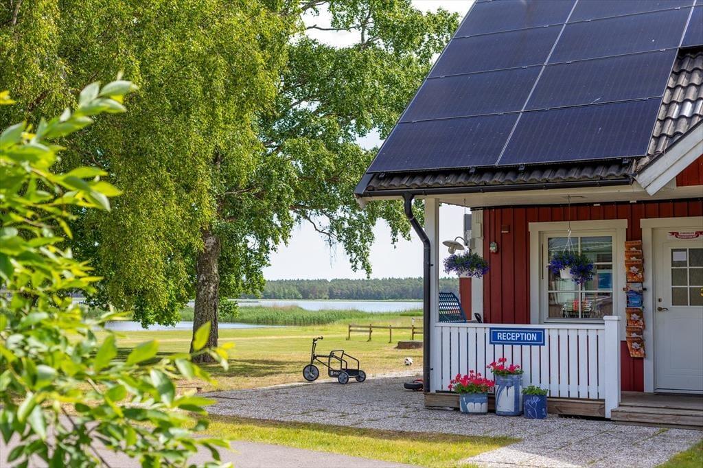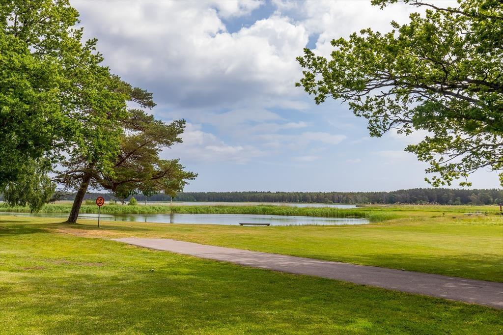 Feriehuset ligger i en feriehusbebyggelse på øen Öland og har direkte udsigt over havet. Til sandstranden med badebro er der kun ca. 100 meter, så du kan nå vandet på få skridt. Andre populære badesteder i området inkluderer Bödabugten, ca. 2 km væk, og Byrum, ca. 18 km fra huset. Lystfiskere vil særligt nyde området, da fiskeri i den fiskerige Østersø er gratis.