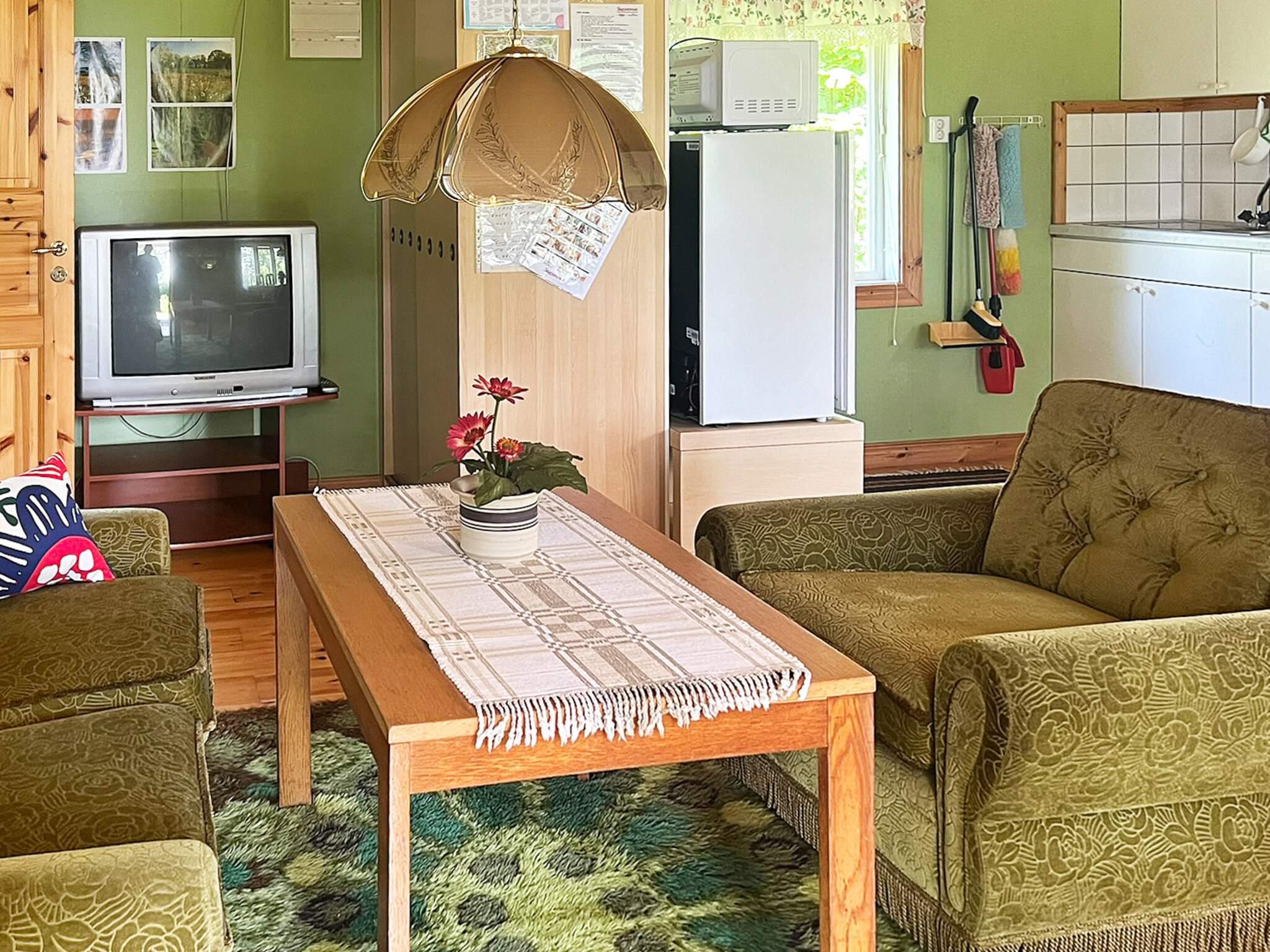 I huset finns endast kallt vatten, friskt och klart från egen brunn. Tomten är hörlig lummig naturtomt med utsikt över sjön mellan träden. Ett sovrum har dubbelsäng och i det andra finns en våningssäng. I anslutning till vardagsrummet finns en altan under tak. Badrummet med handfat och separett-toa. Tillgång till dusch finns i ett gemensamhetsutrymme ca 30 meter från stugan.