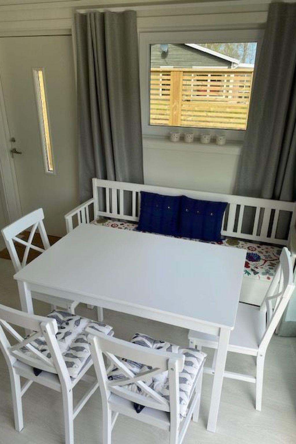 The interior of the house is practical and inviting. In addition to a bedroom with two single beds, there is a loft with a double mattress, which is particularly suitable for healthy, mobile people or children aged 5 and over. A highlight is the well-equipped pentry in the living area, which leaves nothing to be desired. For added convenience, there is a washing machine and modern equipment including a dishwasher, filter coffee machine and kettle.
