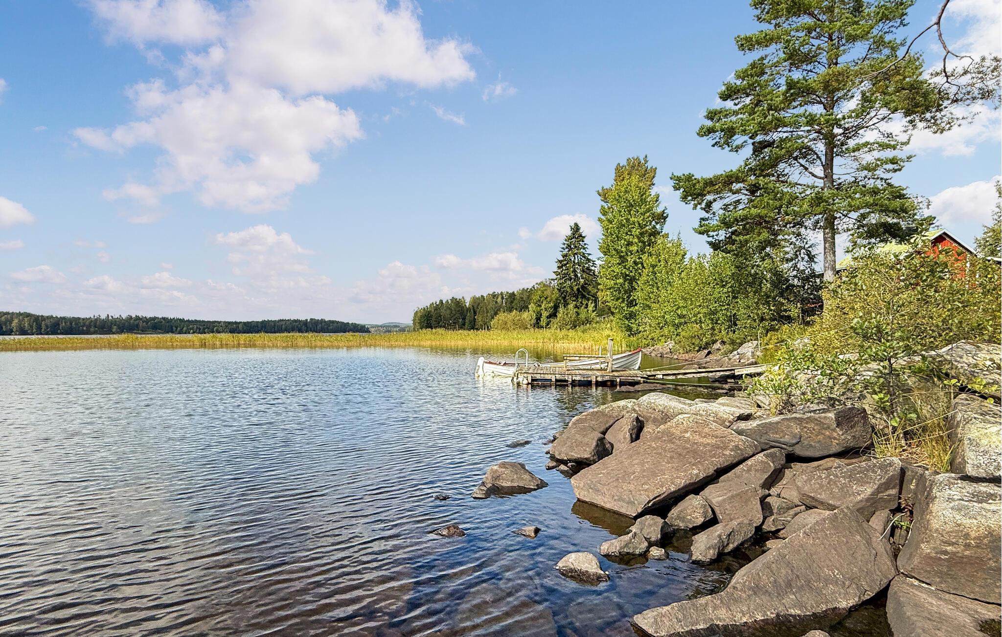 Udsigten er allestedsnærværende og kan nydes, med det samme I står op med morgenkaffen på terrassen. Senere kan I traske ned til søen for et friskt dyp eller prøve at fange noget lækkert til grillen derhjemme. Til huset hører en robåd, i hvilken I kan nyde naturen fra vandet, og på den store grund er der tilmed gode havemøbler og masser af plads til, at børnene kan løbe rundt og lege i solen.
