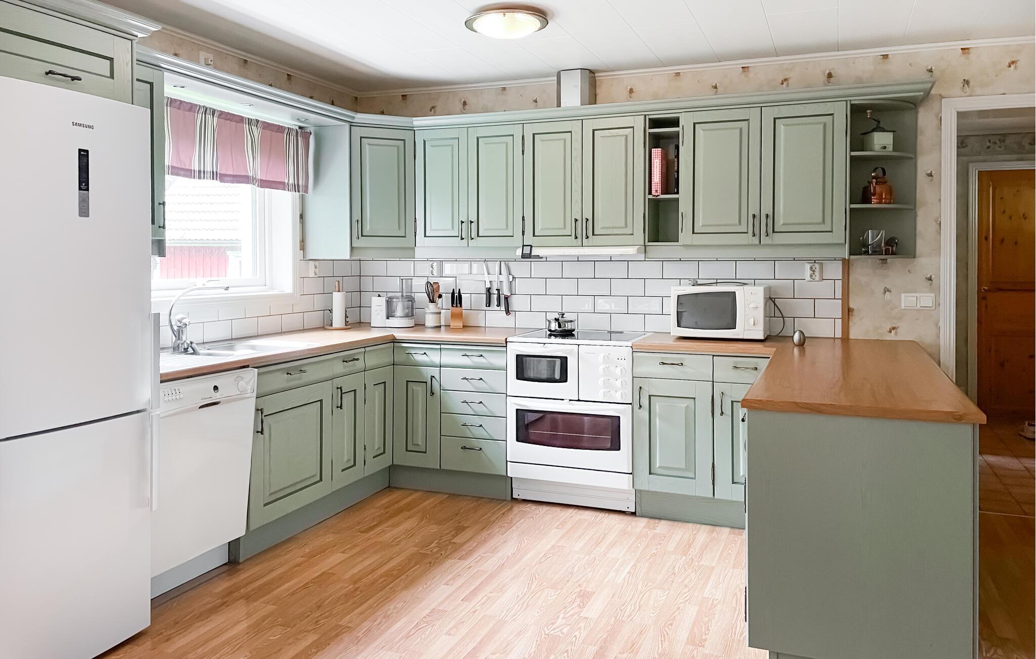 Oplev absolut ro og afslapning i dette charmerende feriehus i Broaryd. Langt væk fra naboer kan I her nyde fuldstændig afsondrethed og privatliv. Det smagfuldt indrettede hus imponerer med lyse rum, en åben indretning og en varm atmosfære, der understreges af det hyggelige træinteriør. Det rummelige opholdsrum indbyder til afslappende aftener, mens det charmerende køkken er godt udstyret til at lave kulinariske lækkerier.