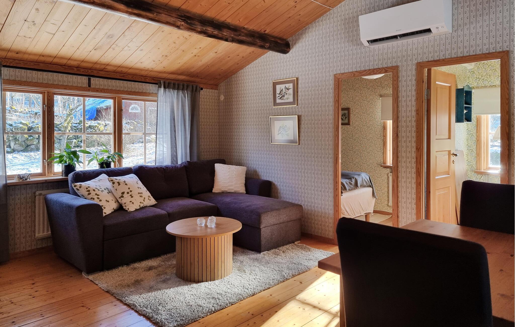Dette velholdte tilflugtssted lægger op til at tilbringe afslappende dage i dets værelser præget af nostalgisk charme. Tilbered dagens måltider sammen i det indbydende spisekøkken og tag plads ved det komfortable spisebord. Tænd pejsen og glæd jer til harmoniske spilleaftener eller stille læsetimer i den behagelige sofa.