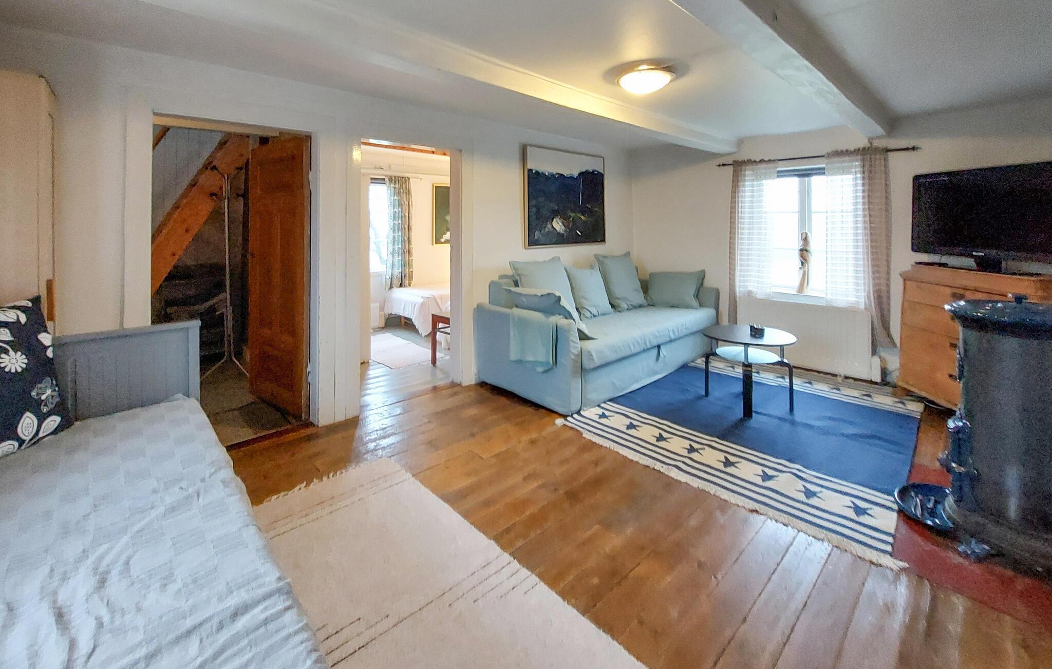 Dette nænsomt restaurerede hus vil fortrylle jer med sin charmerende kombination af gammelt og moderne. Tilbered dagens måltider i det rummelige køkken og sæt jer ved det komfortable spisebord. Glæd jer til selskabelige spilleaftener i den behagelige sofa eller nyd den hjemlige stemning i stuen, mens I hellige jer en spændende læsning.