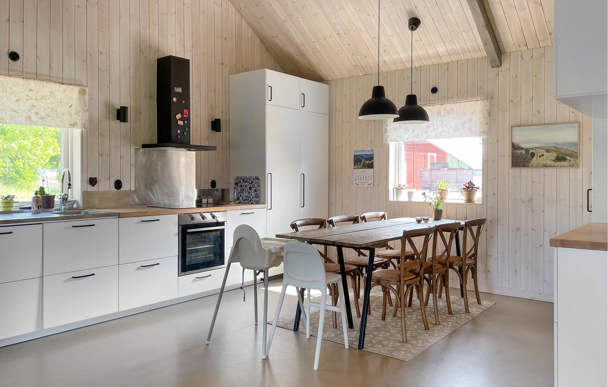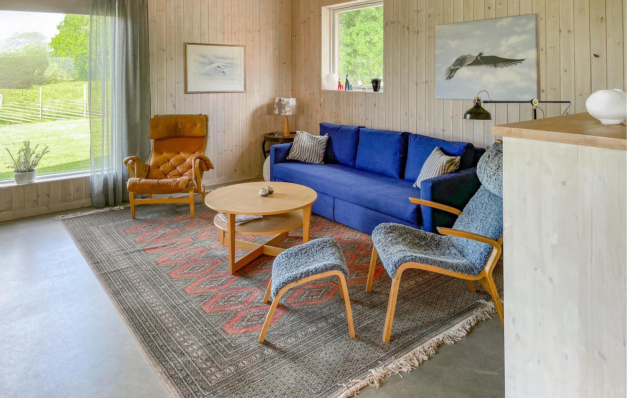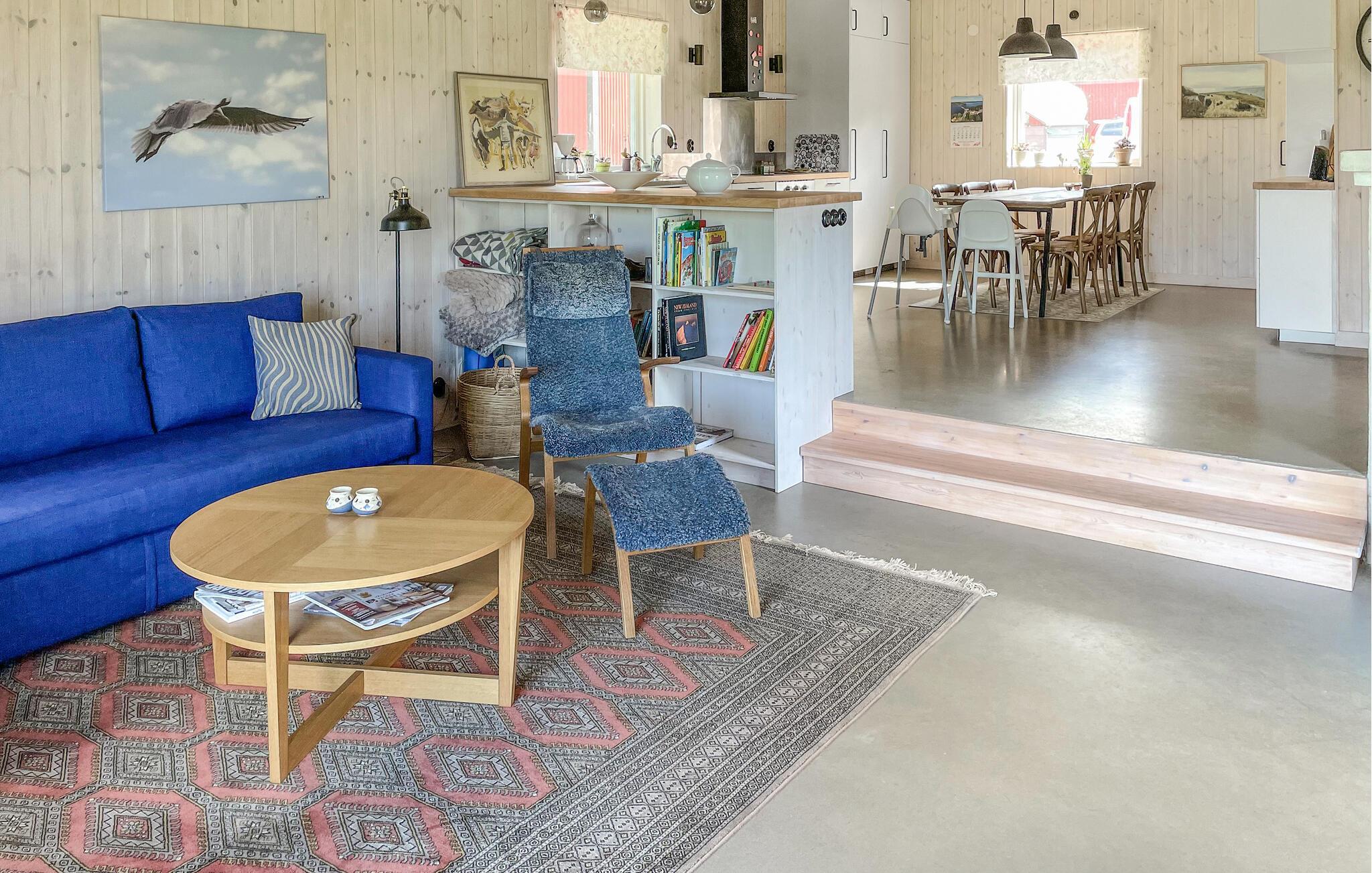 Dette rummelige feriehus ligger i en stor have og byder jer velkommen med en lys og indbydende atmosfære. Tilbered lækre retter sammen og sæt jer ned i den hyggelige spisestue. I den komfortable stue kan I nyde en smuk udsigt over de grønne områder, mens I læser og snakker. Lyt til knitren fra den norske brændeovn, stream en film eller vær vært for en spilleaften.
