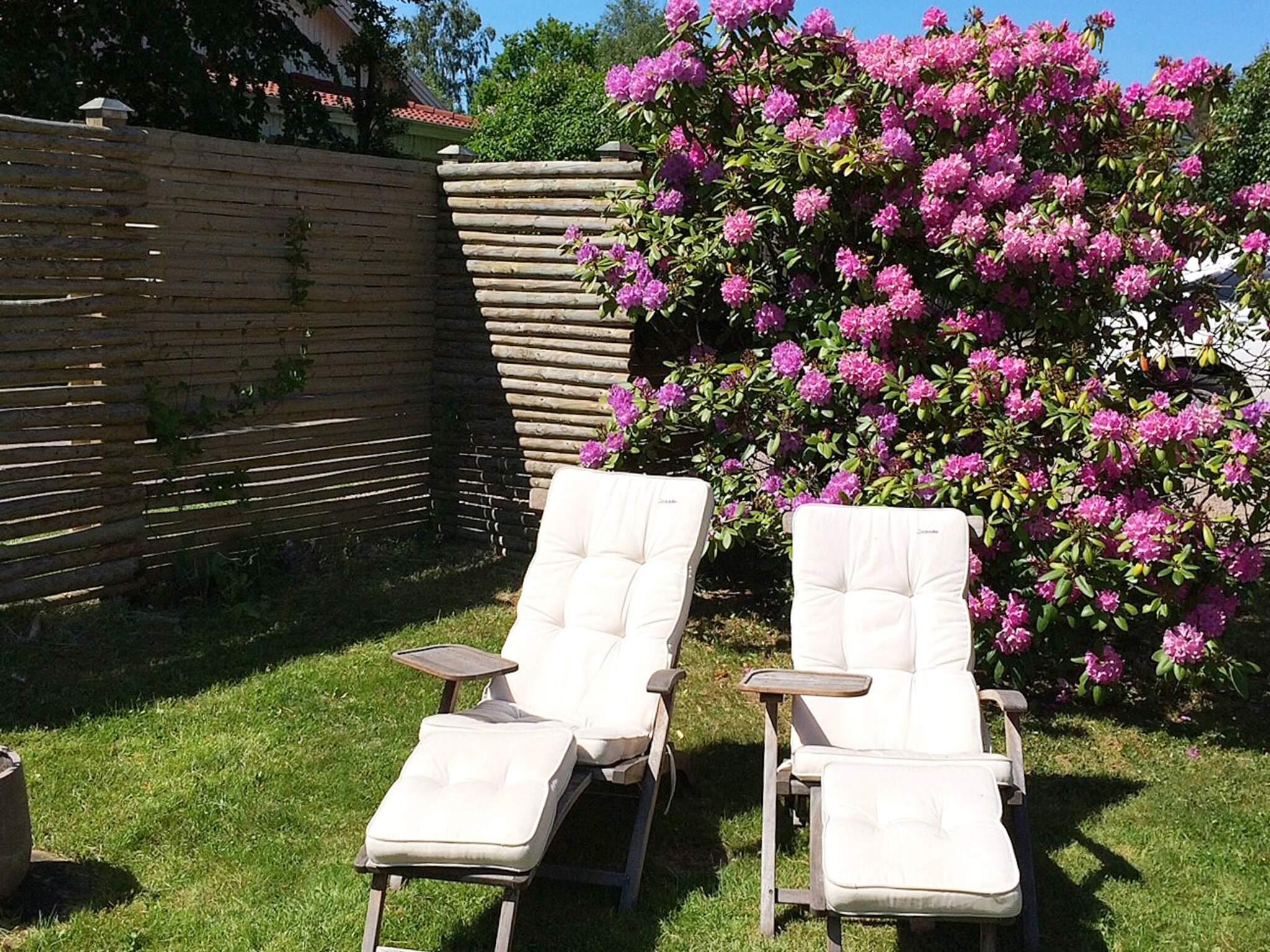 En mycket trivsam semesterbostad på ett bekvämt avstånd till Tylösands vackra, vita sandstränder. Här bor familjen perfekt. Tomten är inramad av staket och prunkande grönska. Det finns flera härliga uteplatser, både för skugga och sol.