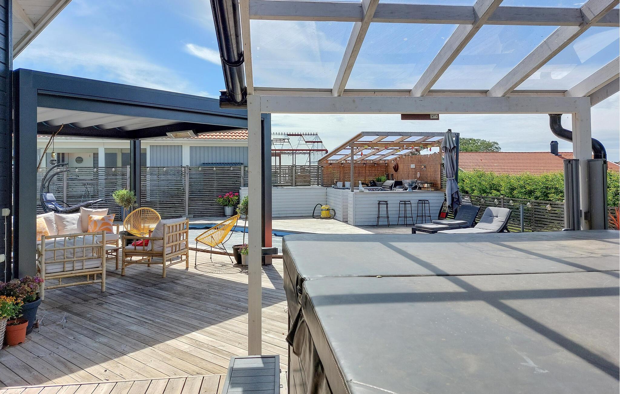 Nyd jeres ferie i dette stilfulde hjem med pool, spabad og udendørskøkken.