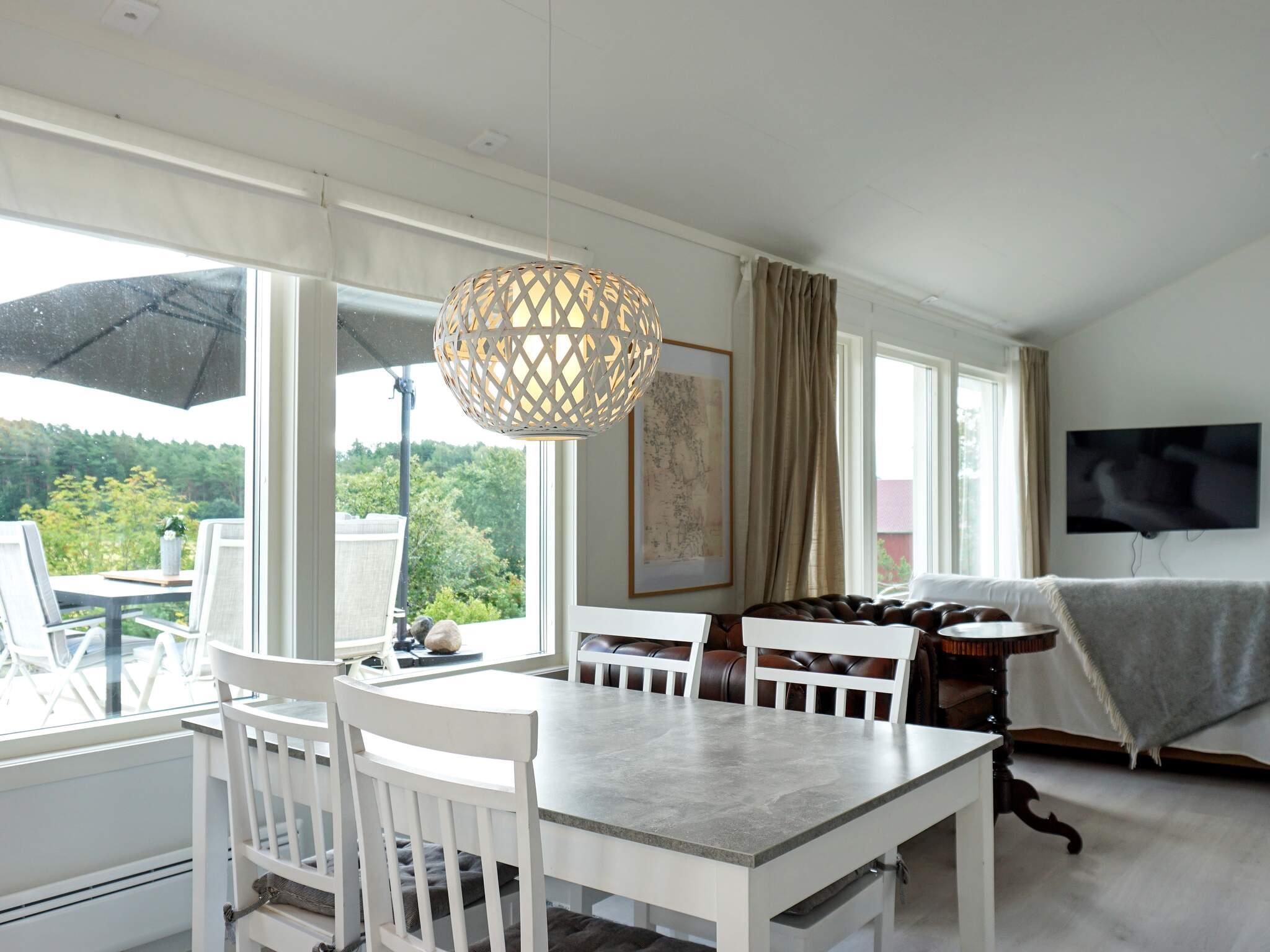 Via stugans veranda når ni entrédörren och vidare in i hallen som övergår i en öppen planlösning med fina sällskapsytor såsom vardagsrum med bl a två sköna soffor och TV, matsalsdel samt öppet kök med spis, kyl/frys, kaffebryggare samt diskmaskin. Tre sovrum varav två sovrum med enkelsängar samt ett mastersovrum med en stor skön 210 x 200 cm dubbelsäng. Badrum med dusch och kombinerad tvätt/torktumlare. Från kök och vardagsrum leder altandörrar ut på ett stort trevligt altanområde som har både sköna vilstolar och utomhusmatgrupp samt grill, en perfekt plats för att avnjuta trevliga stunder och samtal medan ni avnjuter havets läckerheter eller en saftig smakrik köttbit från grillen. Ifall ni vill ta er en tur i området eller till havet för morgon eller kvällsdopp så finns även två cyklar att låna. Stugan har fiberuppkoppling.