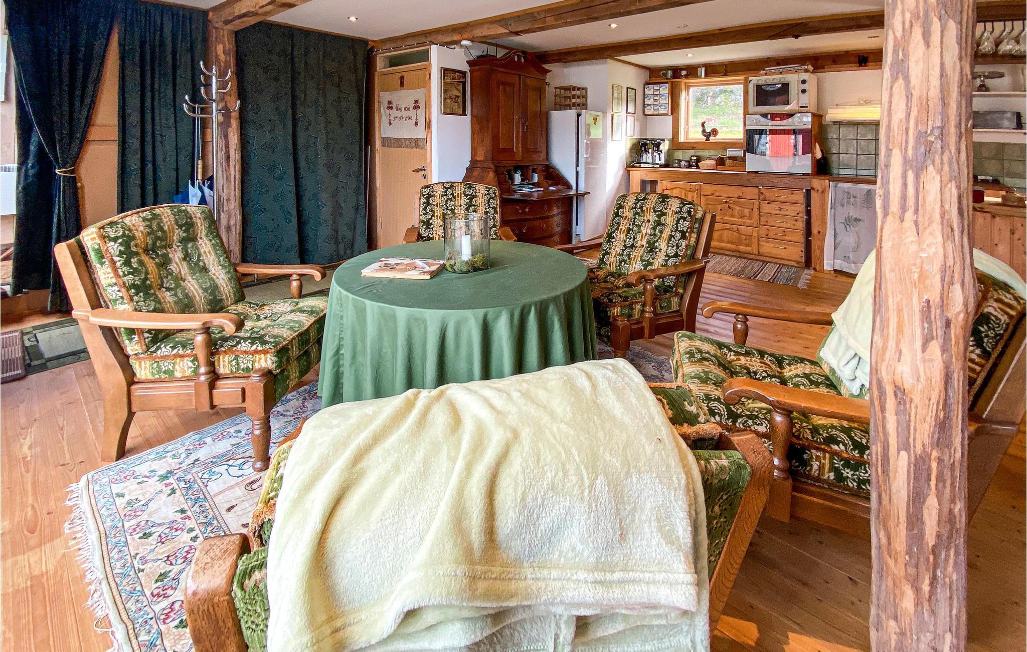 Dette feriehus er ideelt for naturelskere, der holder af aktiviteter i det fri, og som ønsker at bo i et naturskønt område. Her venter store oplevelser, især til fods og på cykel. Huset er kendetegnet ved sin rustikke atmosfære med naturtræ, charmerende træstolper og træbjælker samt en vinduesfront, der ikke kun oplyser det store køkken-alrum, men også giver adgang til den åbne terrasse, hvor I kan nyde alle jeres måltider på varme dage.