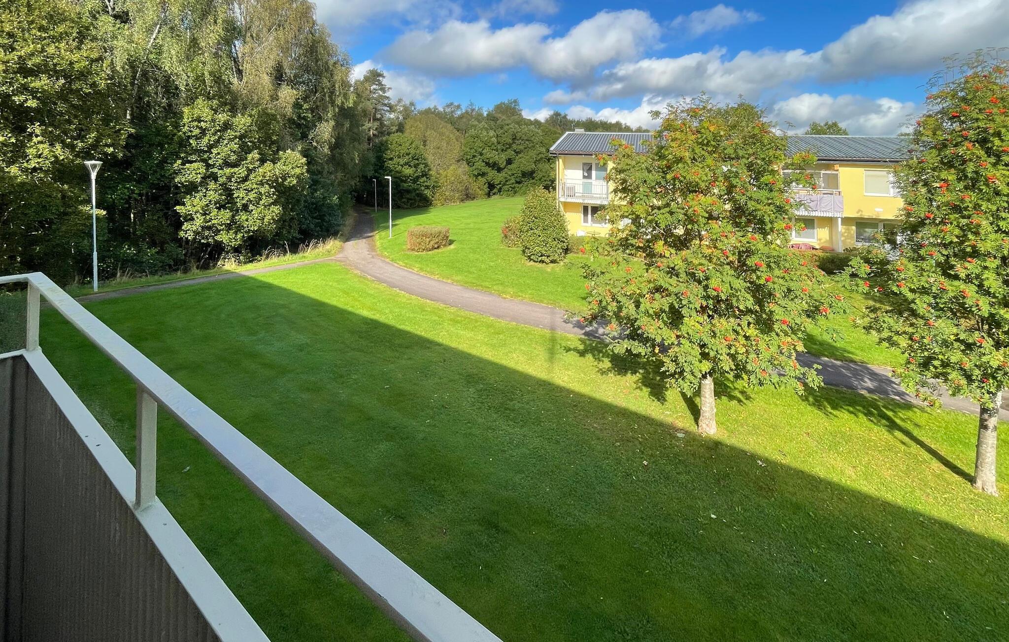 Træd ud på balkonen og nyd udsigten over den velholdte have og de grønne omgivelser. Benyt også de fælles udendørsområder med siddepladser, som lægger op til at tilbringe afslappende timer i den friske luft.