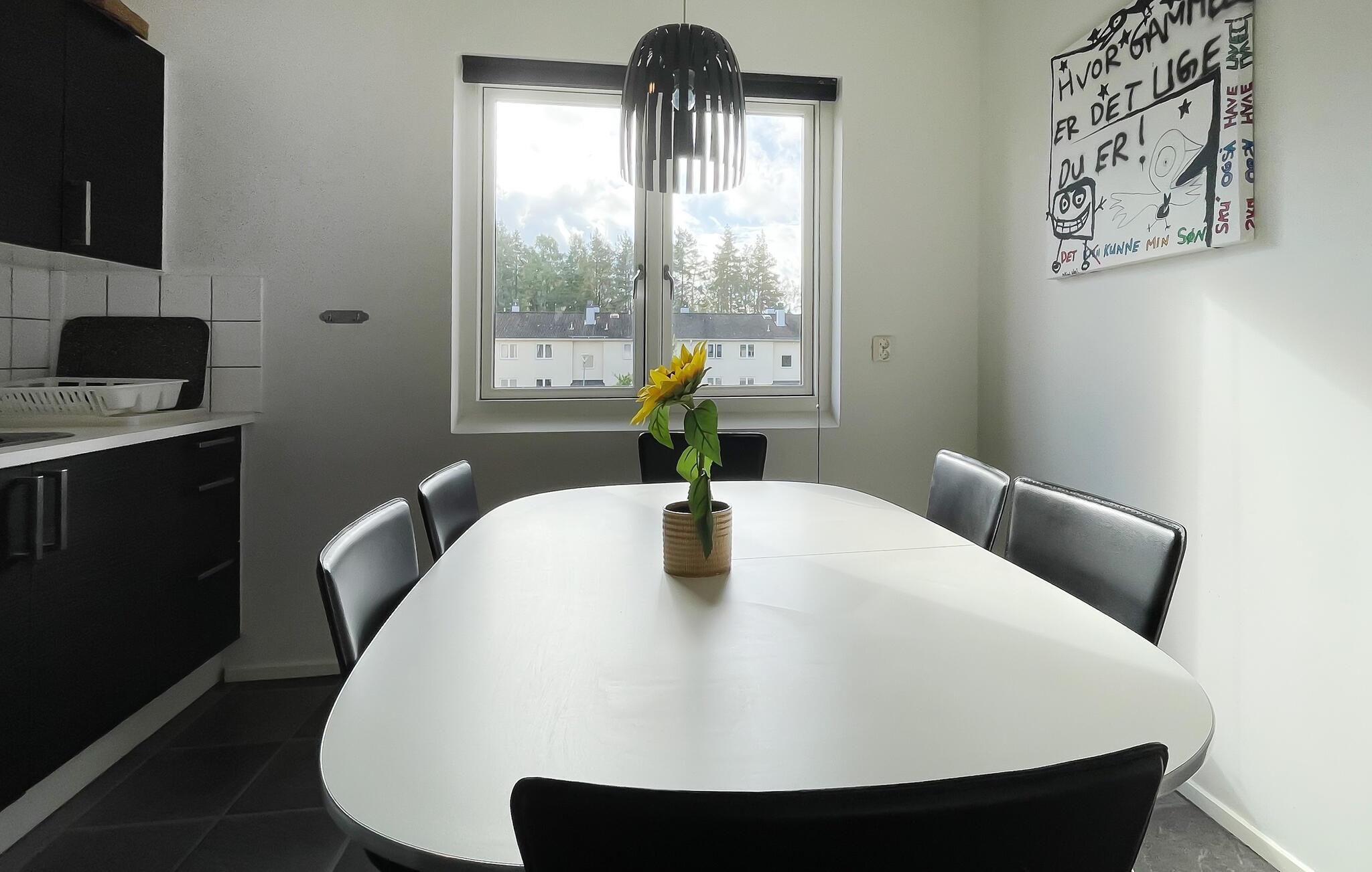 Oplev en bolig, der er det ideelle udgangspunkt for en række forskellige aktiviteter. Træd indenfor og sæt jer godt til rette i den store hjørnesofa i den lyse stue. Se tv sammen, læs en bog eller slap af med en snak i en hjemlig atmosfære. Brug det moderne køkken med spisebord til at tilberede jeres måltider og nyde dem med venner.