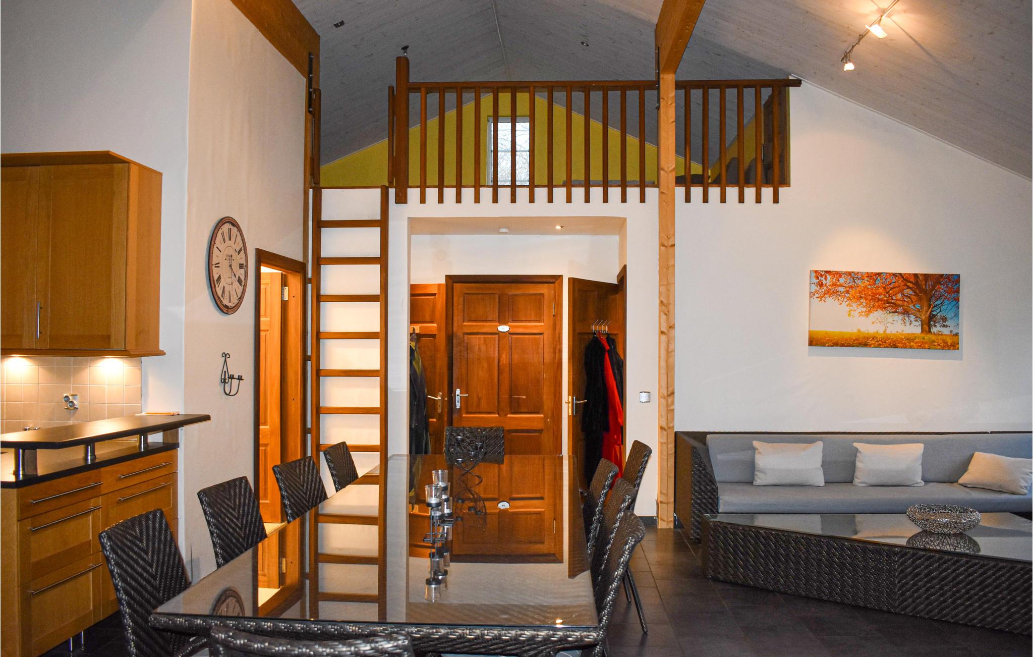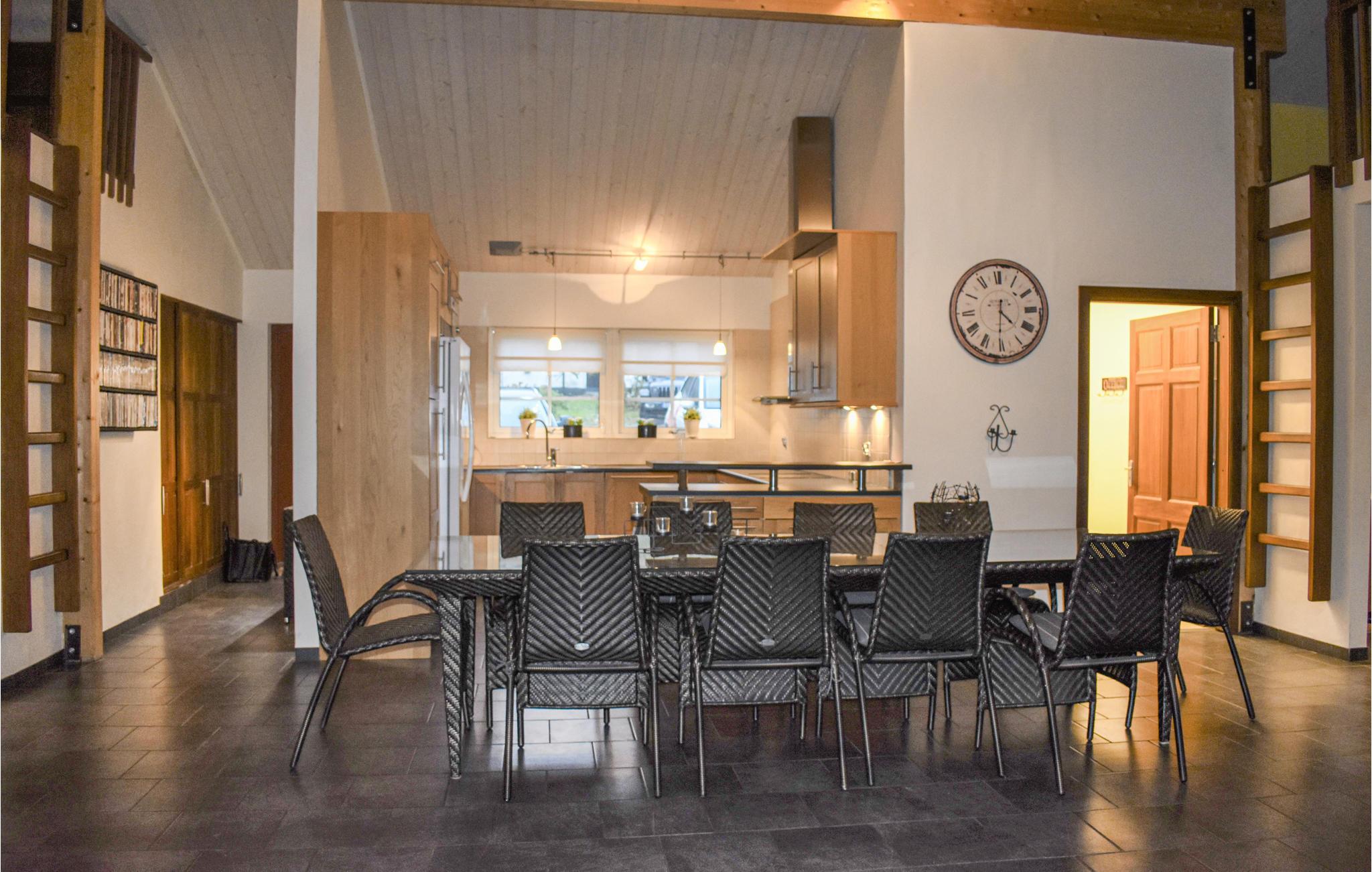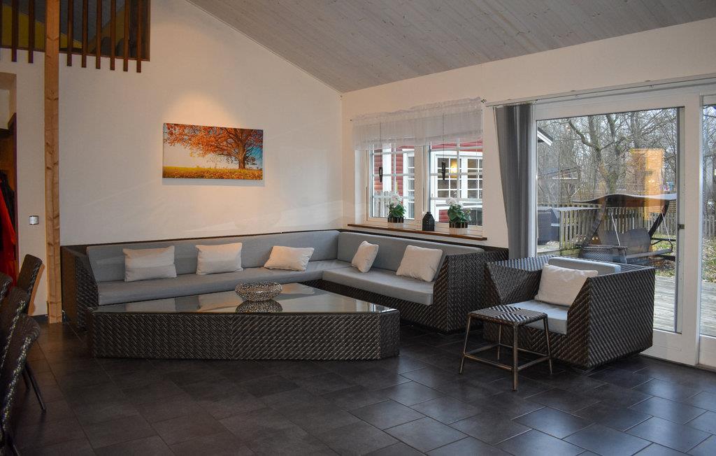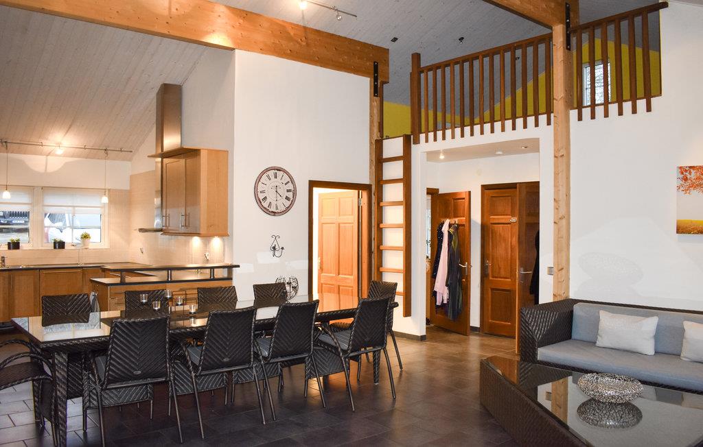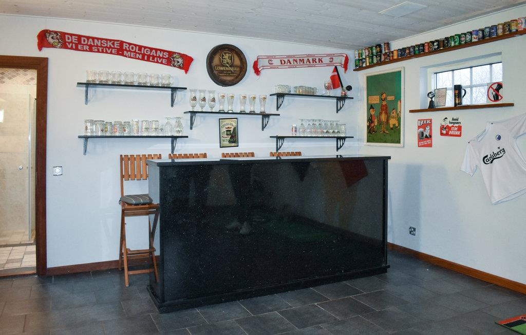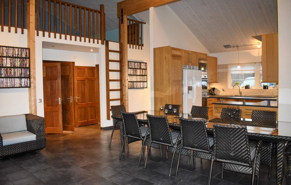 Tilbring en afslappet og underholdende ferie med jeres store familie eller en familie af venner i dette store feriehus, som tilbyder jer det ideelle sted i den åbne og høje stue til at mødes med en stor gruppe, lave mad, spise, lege eller bare at slappe af i sofaen. Til jeres afslapning er der en sauna til jeres rådighed samt en bar i anneksbygningen til glade aftener. I kan også nyde den store terrasse i sommermånederne. som inviterer jer til at solbade og slappe af.
