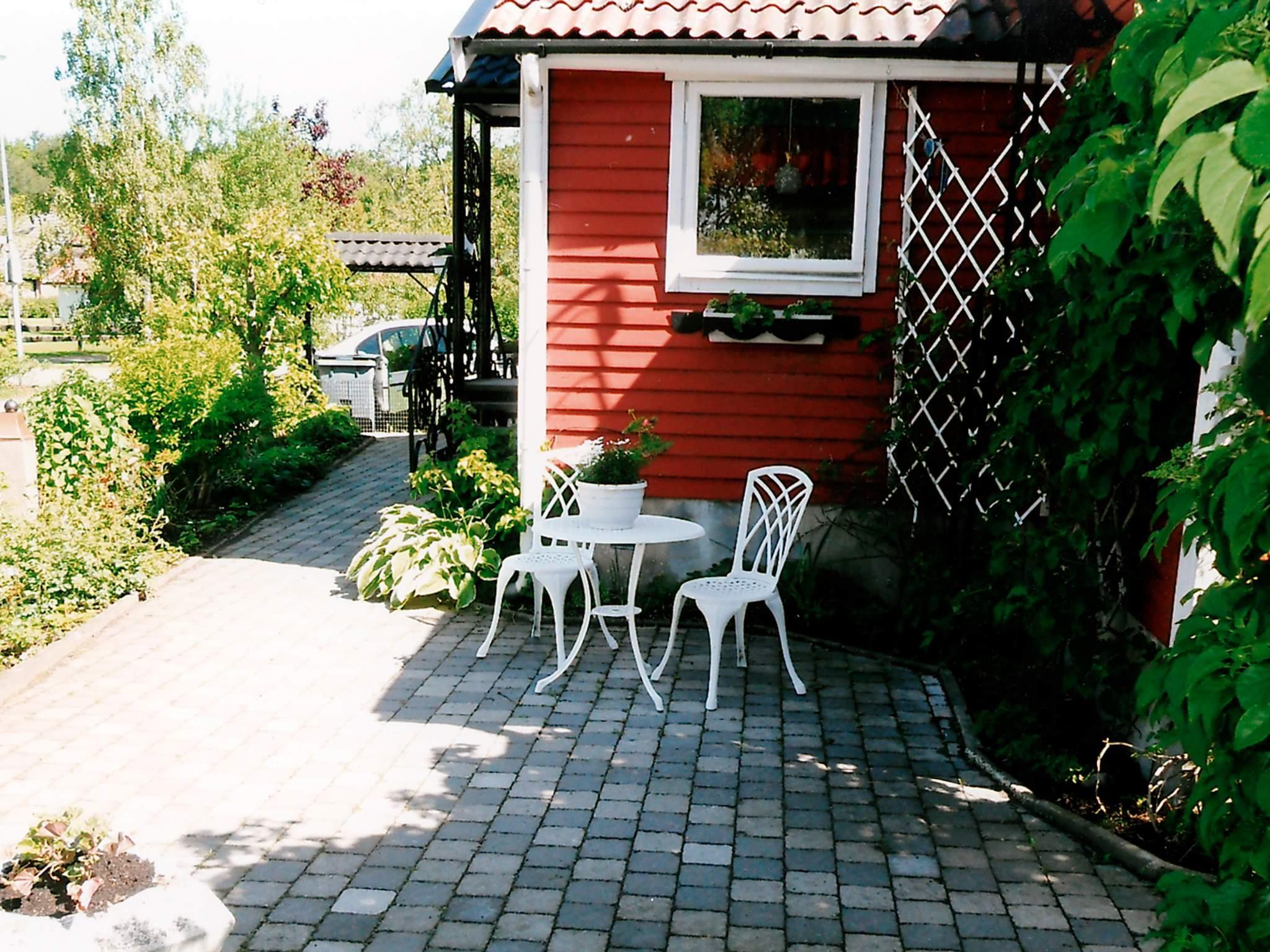 Utanför husets entré finns ett orangeri med golvvärme och utemöbler.