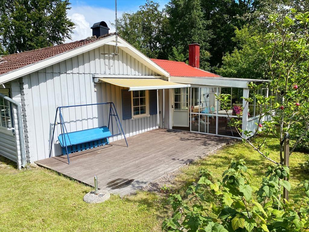 I det vidtstrakte rekreative område Soläng, der ligger ved den ø- og fiskerige sø Välen, er der kun få minutters gang fra huset til en smuk bade- og bådplads med en stor eng. Feriehusområdet ligger lidt uden for den lille by Fagerhult, hvor du finder et lille supermarked og en slagter. 2.500 m derfra ligger restaurant-caféen på Välenbadets Camping, som du i øvrigt også kan nå med robåd ad vandvejen, og som serverer de bedste burgere i Sverige samt is og kager. Der er også et andet badeområde med springtårn og strand. Et andet spændende mål for bådture er en lille ø i Välen med offentlig grillplads. Yderligere indkøbsmuligheder, seværdigheder og kulturelle tilbud finder du i byerne Åseda og Högsby, der ligger ca. 20 km væk, og i den historiske havneby Kalmar, der ligger 70 km væk. Forlystelsesparken Astrid Lindgrens Värld i Vimmerby ligger ca. 80 km fra huset.