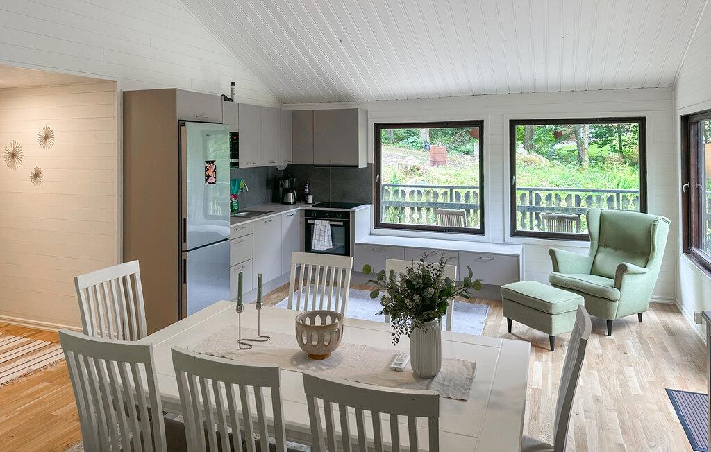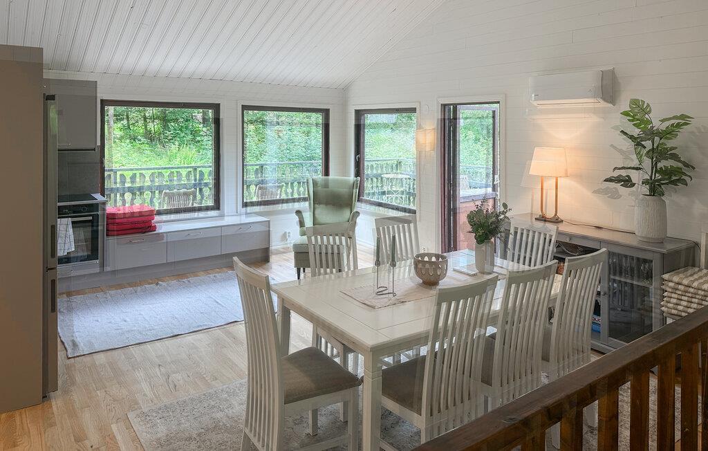 Med dette hus har I smuk natur lige uden for døren. Rådyr og elge kan ofte ses i området. Huset har to store, delvist overdækkede og åbne terrasser med grill, hvor I kan nyde solen, den friske luft og feriens lækre måltider. Huset er meget stemningsfuldt og smagfuldt indrettet. Pejsen i stuen giver varme og skaber en hyggelig atmosfære på kølige dage.