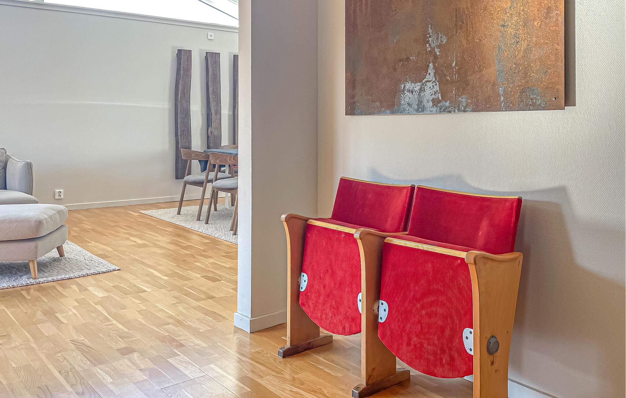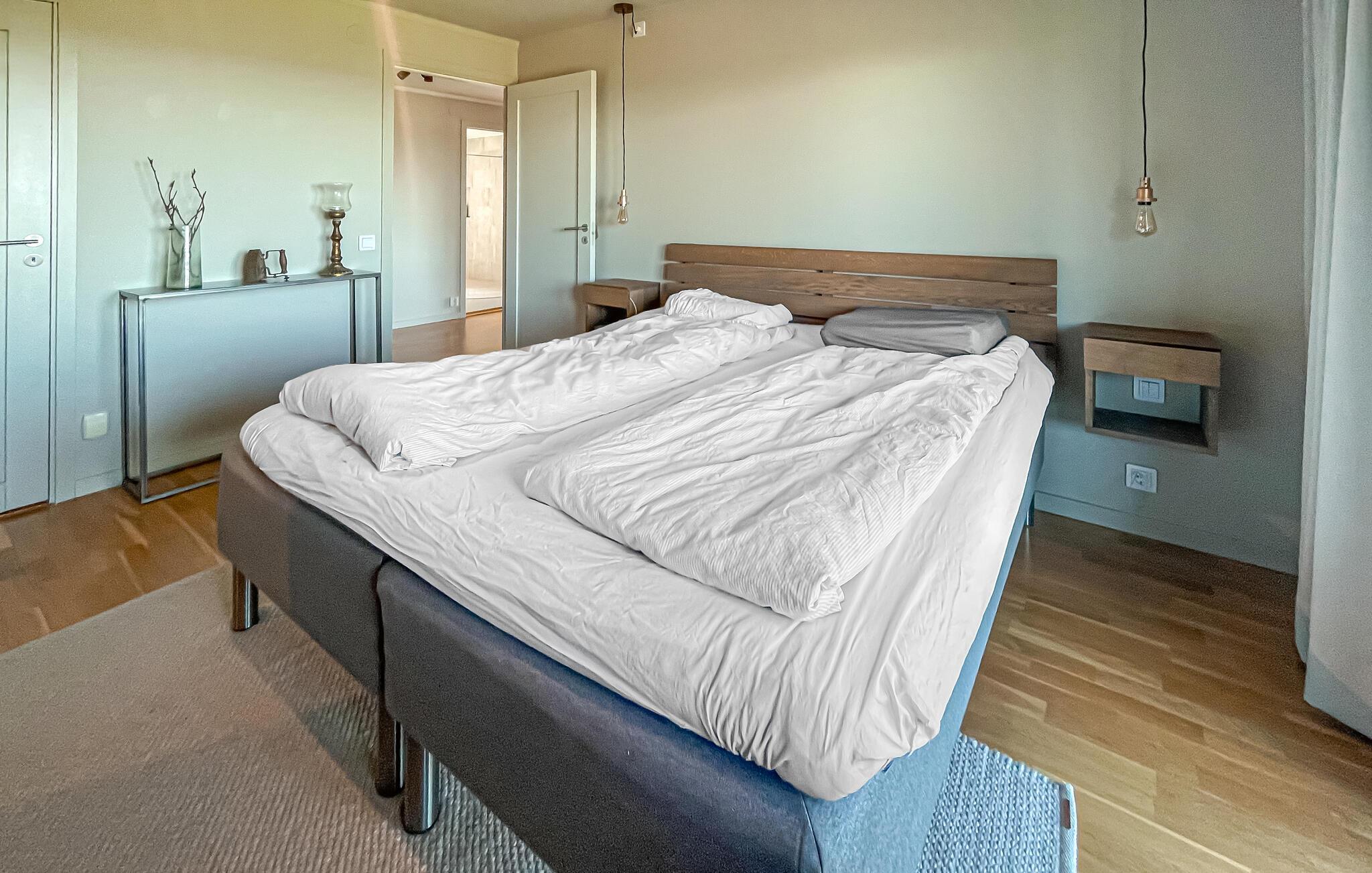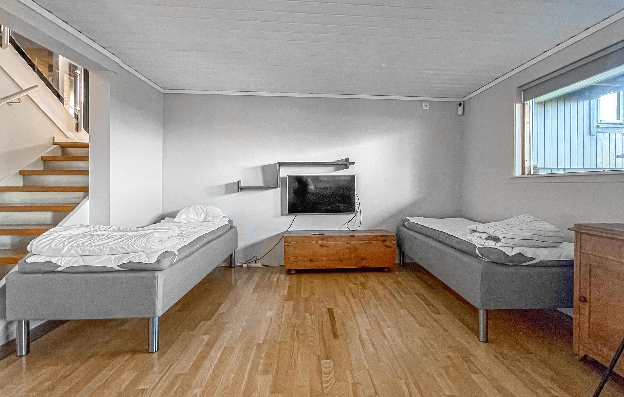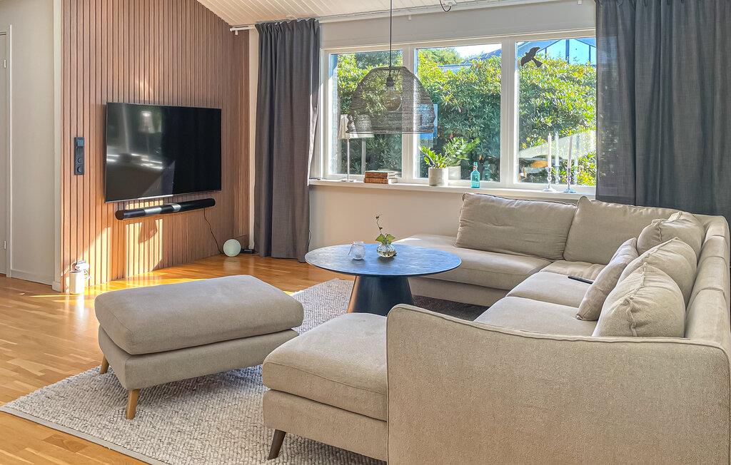 Dette smukke, komfortable feriehus giver jer rigelig plads til en dejlig ferie, selv med en større familie. Glæd jer til hyggelige madlavningsaftener og muntre måltider ved det lange spisebord. Slap af i saunaen efter en saltvandsdukkert i havet og tænd brændeovnen til hyggelige læsestunder, harmoniske spilleaftener eller stream en spændende film, som alle vil nyde.