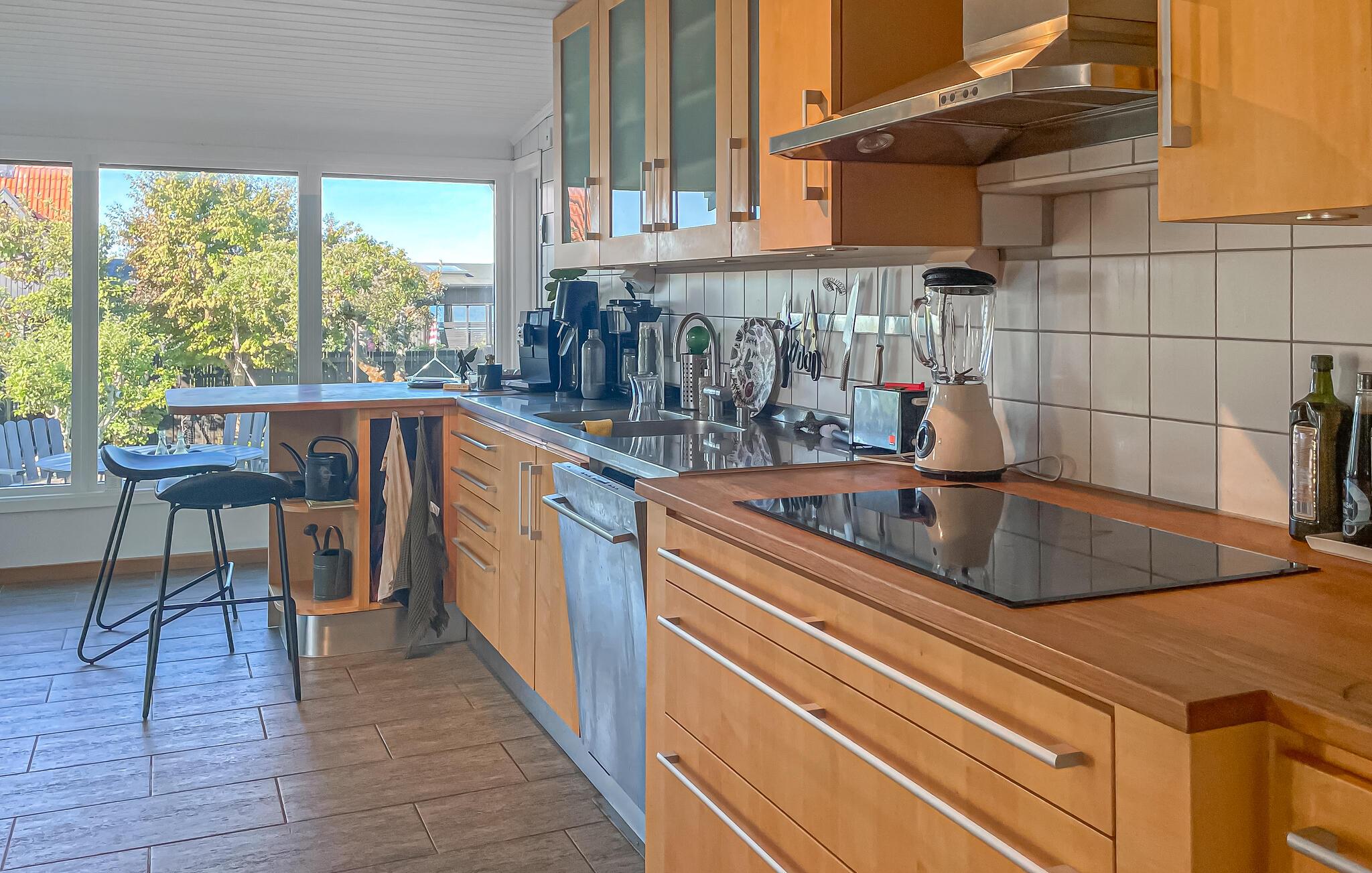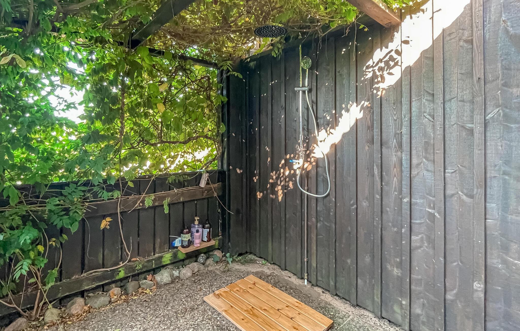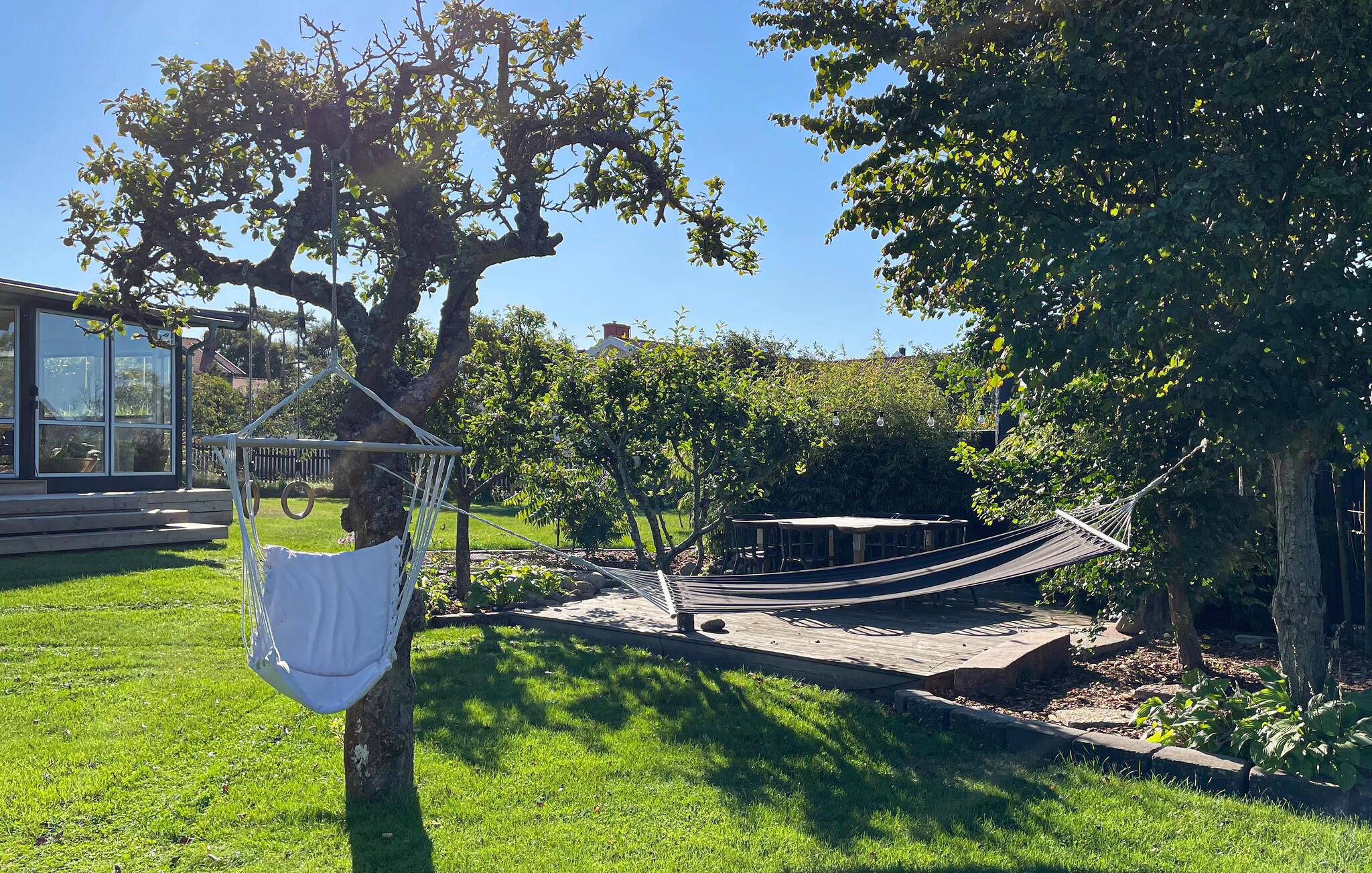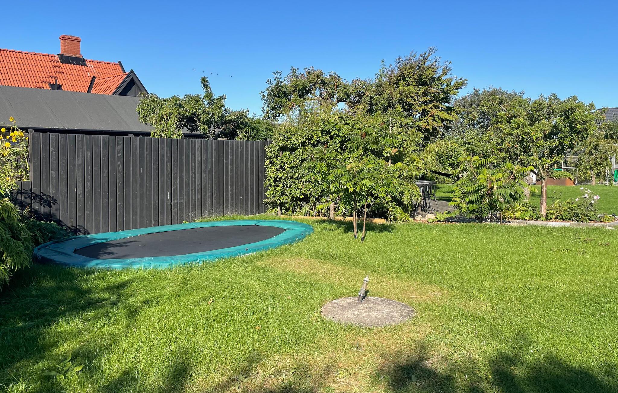 Den store, overdækkede have byder på hyggelige steder at spise og snakke i den behagelige havbrise. Mens børnene boltrer sig på trampolinen eller har picnic, kan I tænde op i grillen eller nyde et glas vin på den indbydende træterrasse.