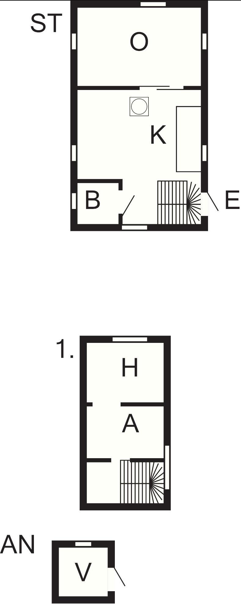 Stugans entréplan rymmer mysigt kök med braskamin och matplats, ljus vardagsrum med sittgrupp och TV-hörna (bredband). Litet badrum med dusch. Via brant trappa kommer ni upp till sovloftet med snedtak (Höjd ca 140 – 185 cm). Loftet är uppdelat i ett öppet rum med en enkel säng samt en platsbyggd soffa som även fungerar som säng. Lämplig för barn eller ungdom. Längst in via trång öppning pga. murstock ligger ett ljust romantiskt sovrum med dubbelsäng. En öppning finns mellan loftet och köket.