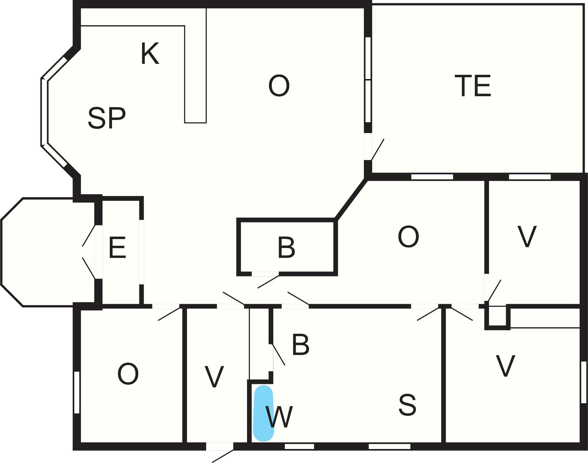 Huset rymmer ljust kök med köksö och fin matsal med utgång till altanen samt braskamin för svala kvällar. Här finns även en 130 cm bred säng (1-2) pers som fungerar som soffa på dagtid. Tre bekväma sovrum varav ett med 190 cm bred dubbelsäng och genomgång till det största badrummet. Det andra sovrummet har 180 cm bred dubbelsäng och det tredje två 100 cm breda enkelsängar. Flera rum för umgänge och sällskap, bla separat Tv-rum med soffgrupp.