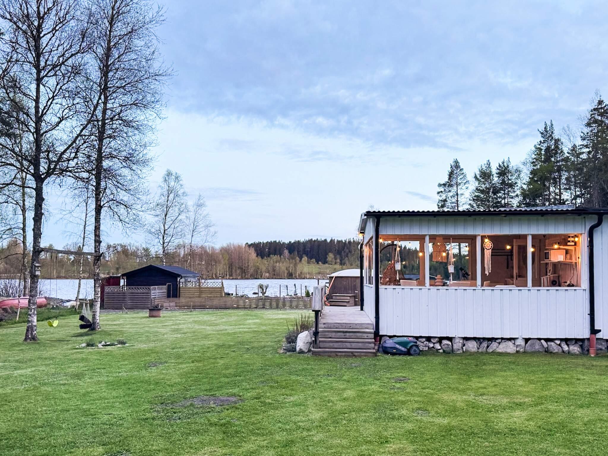 Med fantastiskt sjö nära läge hittar ni här denna mysiga stuga med sjöutsikt. Stugan har en stor inglasad altan med samma härliga utsikt där ni kan spendera kvällarna. Ut från den inglasade delen kommer ni till den vedeldade badtunnan. Här njuter ni av ett härligt bad med vacker utsikt över sjön.