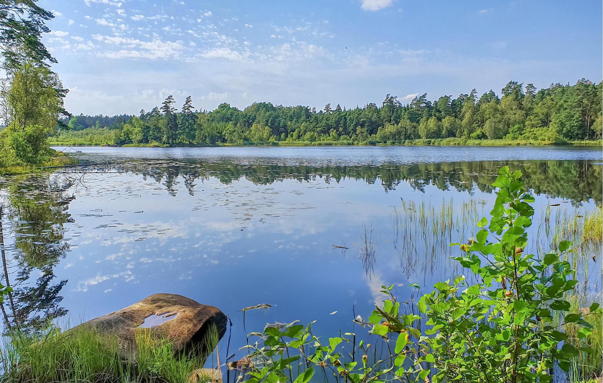 Skønt feriehus på ugeneret naturgrund ved sø med badebro