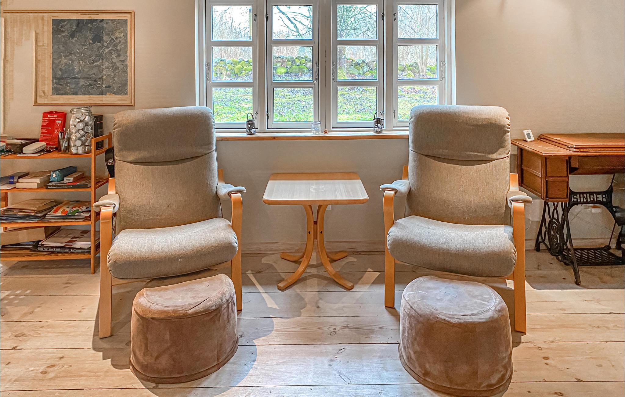 Her er I omgivet af smukke tårnhøje træer. Dette gamle hus i smukke naturomgivelser byder på en høj levekomfort. Indrettet i moderne stil og med en varm atmosfære og historisk atmosfære. Træd ind i den store vinkelstue med pejs. Her finder I en kæmpe hjørnesofa og et stort tv til hele familien. Find jer godt til rette her og underhold jer selv i hjemmebiografen. Dejlige lænestole med ottomaner til aftenchat. Tag på fisketur i den smukke sø kun 500 meter fra huset. Nyd grillet fisk udendørs om aftenen.