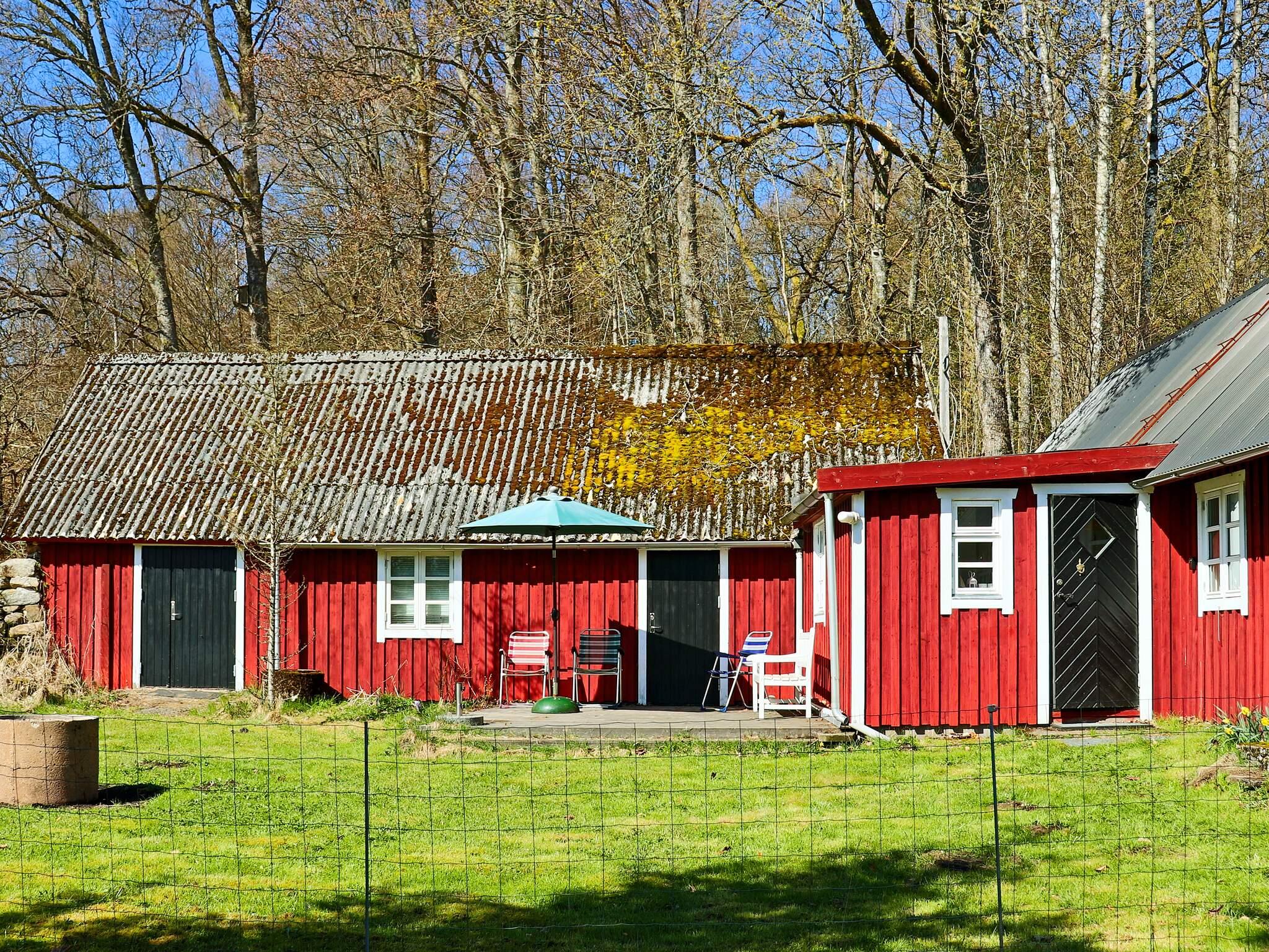 Från entréhallen har ni ett badrum med dusch och sedan ett mindre men välutrustat kök. Intill köket finns ett härligt ”naturskafferi”, perfekt för kyld förvaring. Intill köket finns ett matrum. Vardagsrummet har sköna sittmöbler och en bäddsoffa för två personer samt TV. Sovrummet har två enkelsängar. En trappa leder upp till ett rymligt sovloft med fyra enkelsängar. Stugan lämpar sig bäst för max 6 personer. I förrådsdelen av huset finns både grill och flera trädgårdsmöbler. Uteplatserna erbjuder både sol och skugga.
