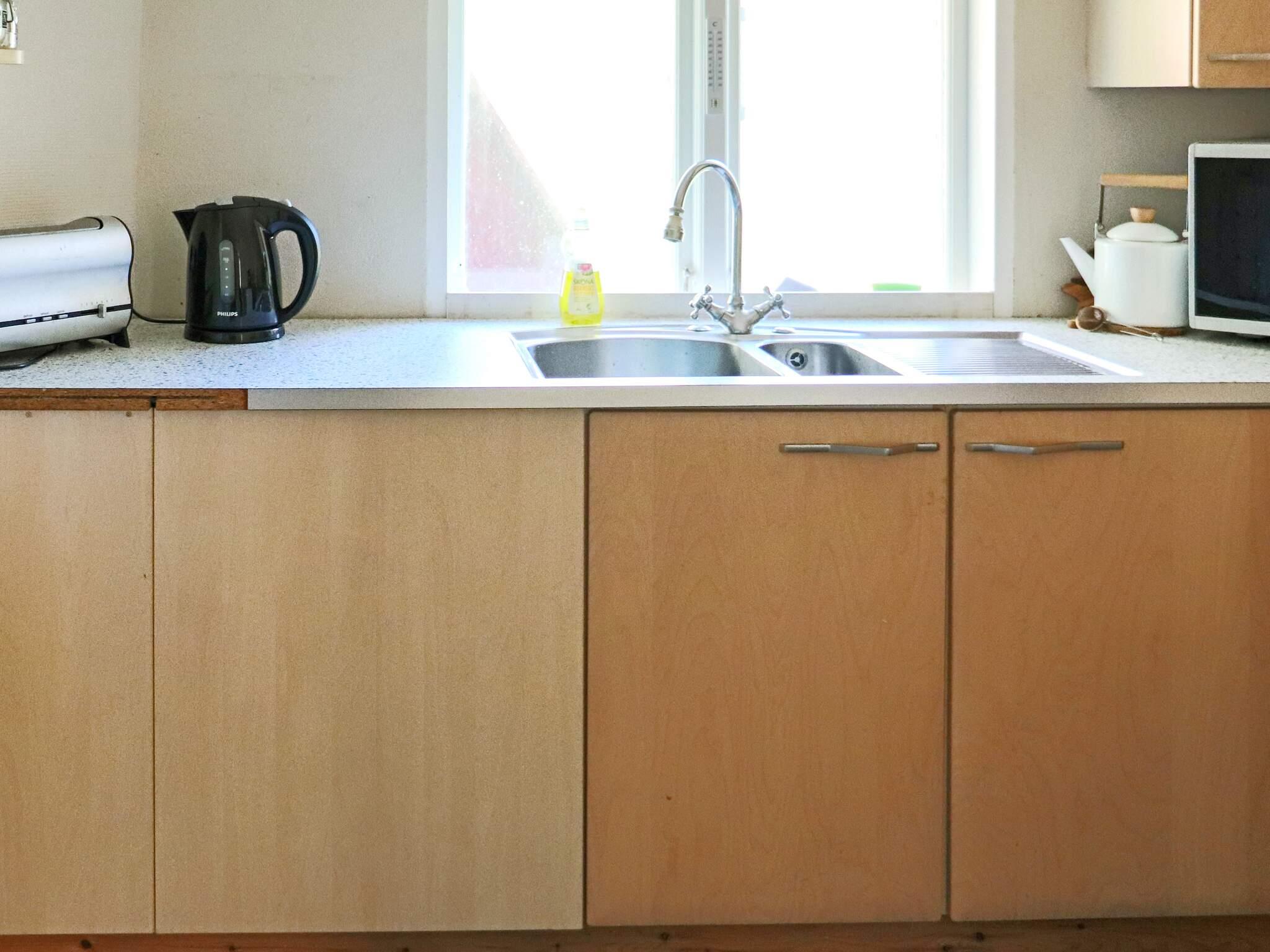 Køkken: El-komfur, køle-frys, mikroovn, kaffemaskine, vand fra brønd