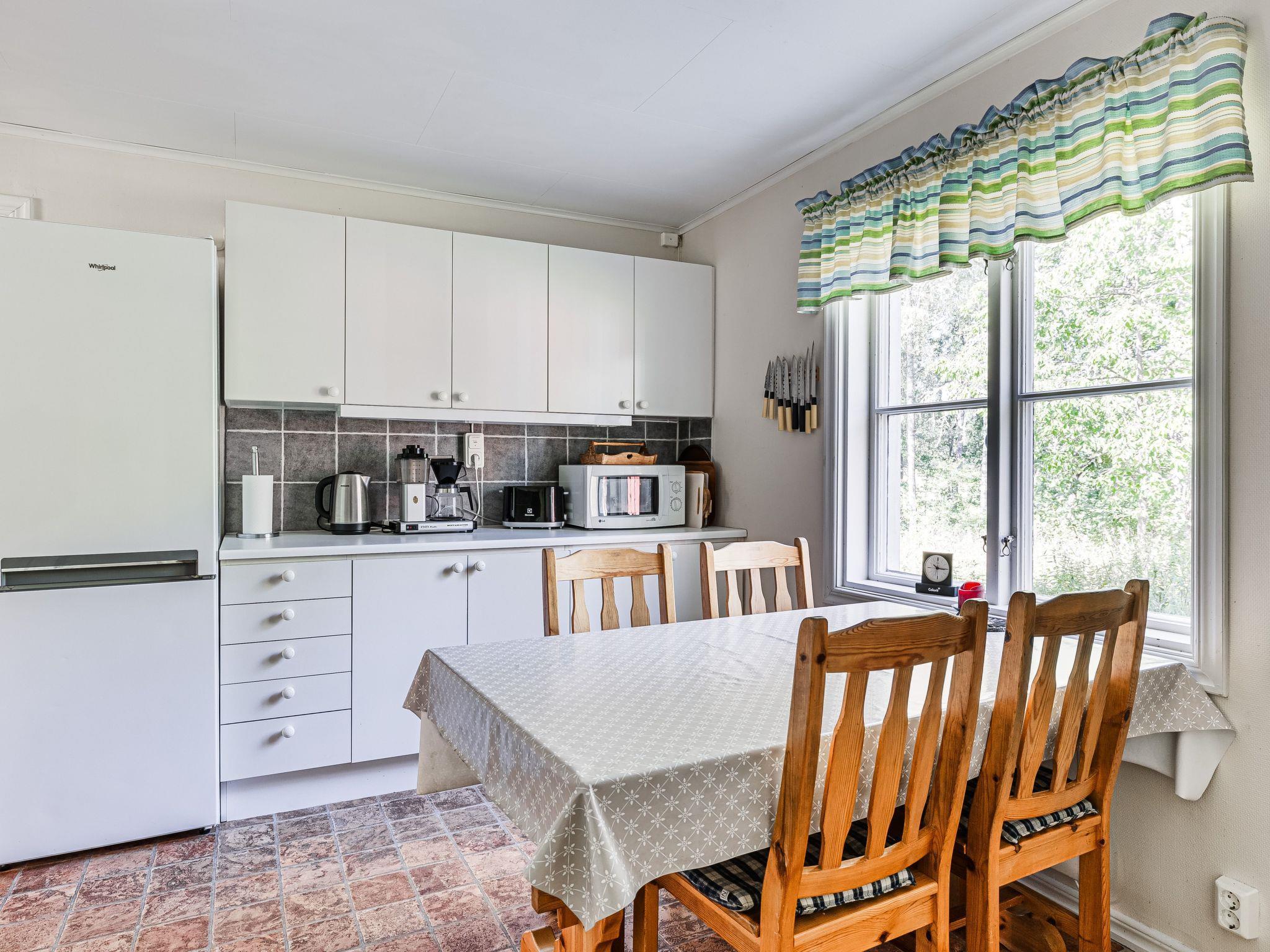"Mjöshult", 4-room house 90 m2 on 2 levels. Bright: living/dining room with open-hearth fireplace, dining table, satellite TV and DVD. 1 room with 2 beds. Exit to the garden. Kitchen (oven, dishwasher, 4 ceramic glass hob hotplates, toaster, kettle, microwave, freezer, electric coffee machine) with dining table. Shower, sep. WC, double hand-basin. Electric heating. Upper floor: 1 room with sloping ceilings with 1 double bed. 1 room with sloping ceilings with 1 bed and 1 double bed. Entrance hall with sloping ceilings with 1 bed. Wooden floors. Facilities: washing machine. Internet (WiFi, free). Please note: one double bedroom is outside the apartment. Non-smoking house. Maximum 2 pets/ dogs allowed. No internal connecting door between the separated properties. Freezer approx. 60 l. When there are less than the maximum number of guests staying at the property, the annex will not be available for use.