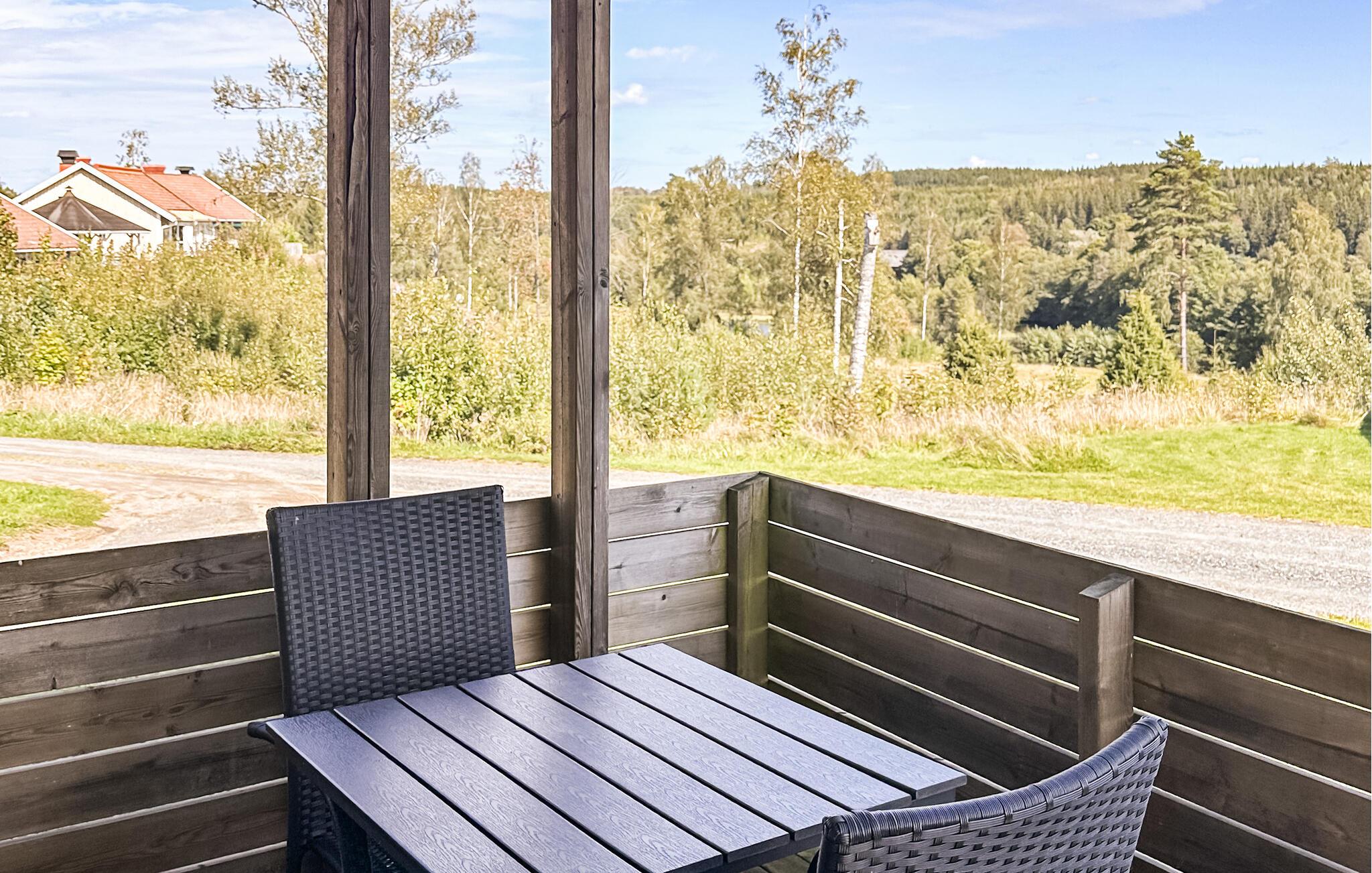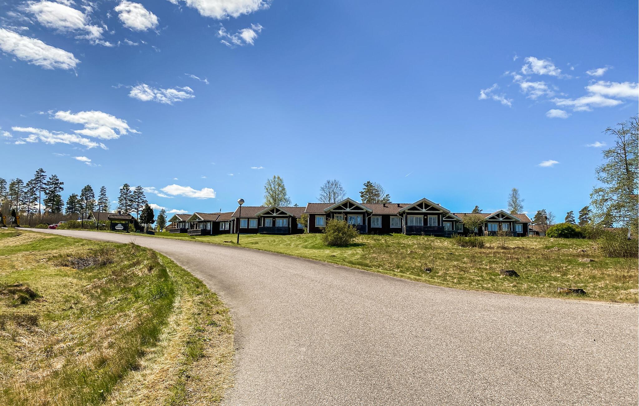 Feriekomplekset ligger højt tæt ved skoven og byder på en smuk udsigt over Härån-floden. Tag på vidunderlige gå- og vandreture eller besøg en nærliggende ejendom med wellness-tilbud. I kan også nemt nå Astrid Lindgrens verden herfra.