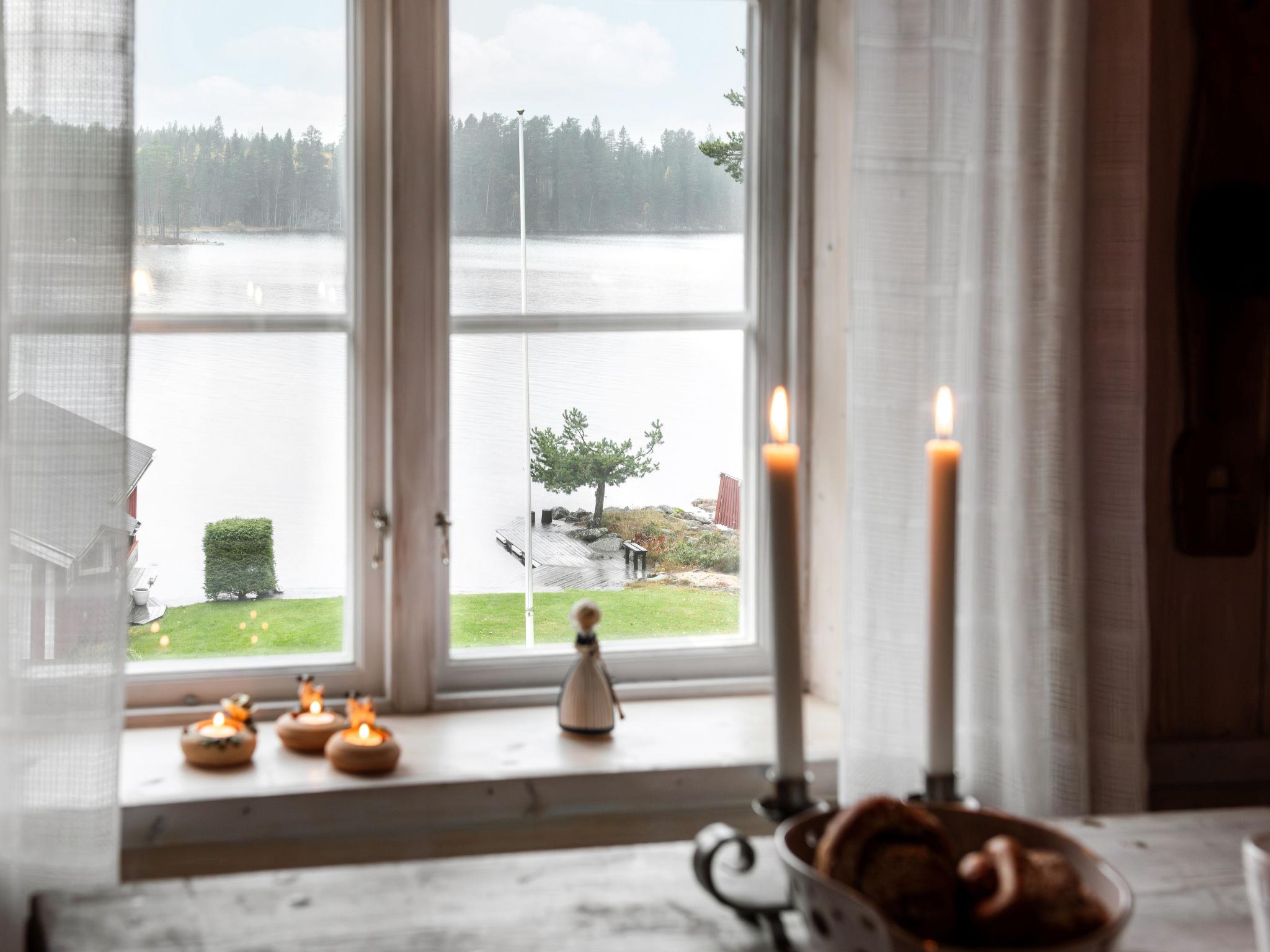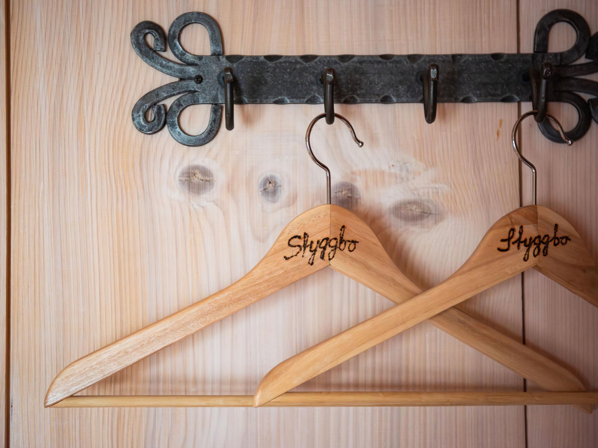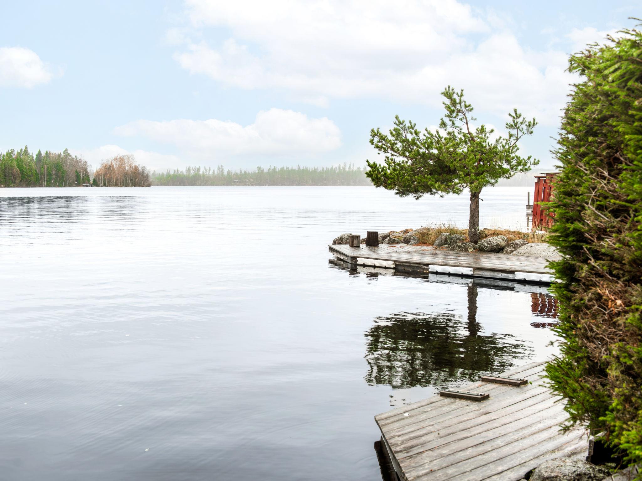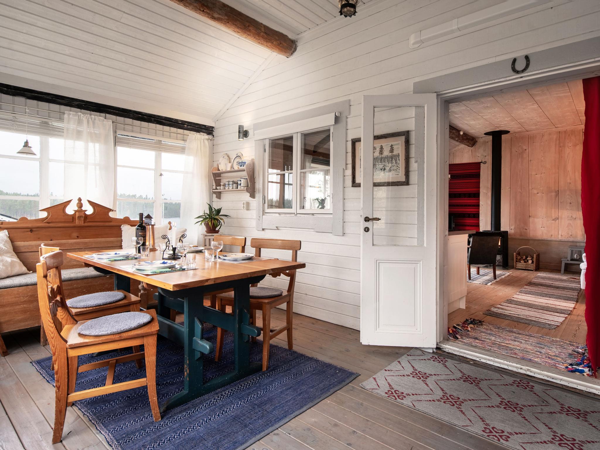 "Viksjö Utsikten", 1-room cottage 60 m2. Comfortable and rustic furnishings: open living/dining room with 1 x 2 bunk beds (80 cm, length 200 cm), 1 double bed (2 x 90 cm, length 200 cm), Scandinavian wood stove, dining table and TV (flat screen). Open kitchen (oven, 4 ceramic glass hob hotplates, toaster, kettle, microwave, freezer, electric coffee machine). Shower, sep. WC, Sauna. Electric heating, wood heating. Wooden floors. Terrace 40 m2 partly roofed. Terrace furniture, barbecue. Beautiful panoramic view of the lake. Please note: fridge without freezer, non-smoking house. Smoke alarm, fire extinguisher. Outdoor shower by the lake. Instead of an enclosed bedroom, some sleeping areas are located in an open-plan area (gallery, alcove, etc.).