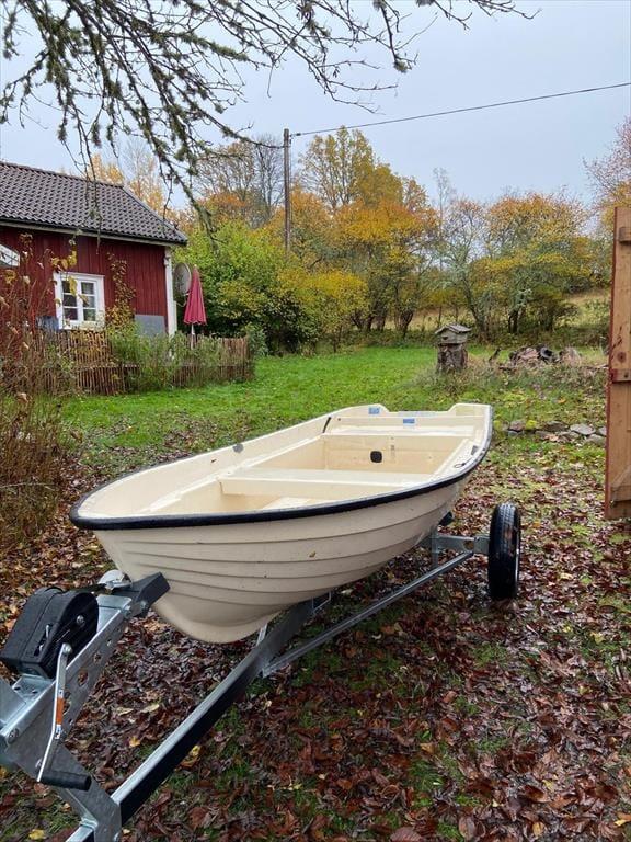 På terassen står havemøbler, liggestole, en parasol og en kulgrill. Fra foråret 2026 vil der også være en robåd til rådighed.