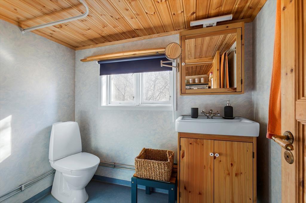 Det rød-hvide feriehus, med et boligareal på 78 m², blev opført i det 19. århundrede. Det er sidenhen blevet nænsomt renoveret, moderne indrettet og fået en ny, delvis overdækket veranda ved indgangspartiet. Stuen, med en loftshøjde på 1,95 m og synlige loftsbjælker, er hyggeligt indrettet med brændeovn, TV og spisehjørne. Fra stuen er der adgang til et lille værelse med en 1,40 m bred, dobbelt sovesofa. Badeværelset har bruser, toilet og håndvask. Køkkenet er udstyret med induktionskomfur, mikroovn med ovnfunktion og køleskab med fryser. Via den originalt bevarede, ret stejle trappe, kommer man op på førstesalen. Her er et soveværelse, med en stor dobbeltseng (1,80 m x 2,00 m), samt en alkove med en børneseng. Huset har koldt og varmt vand, og kan opvarmes elektrisk eller med brændeovn.