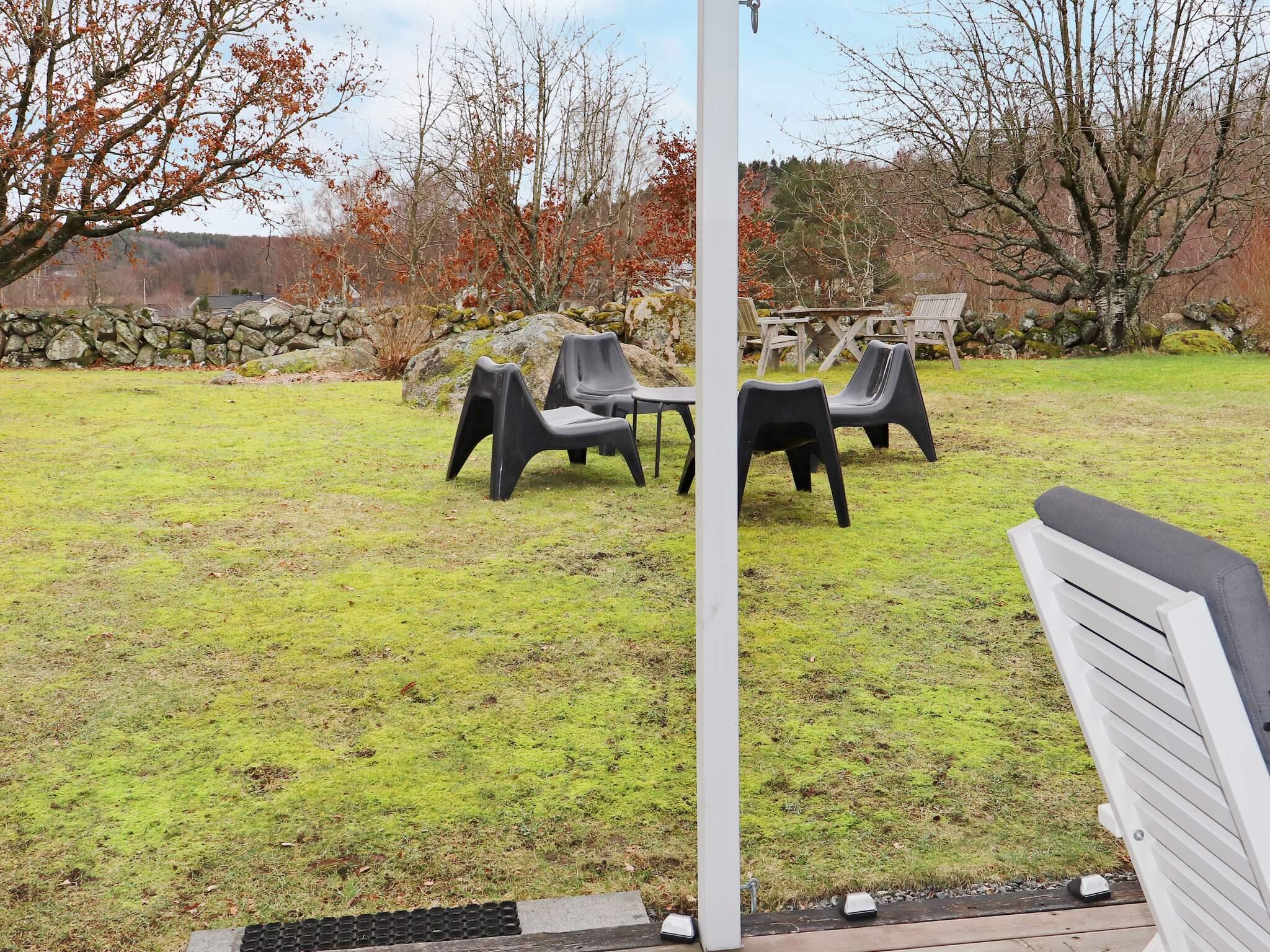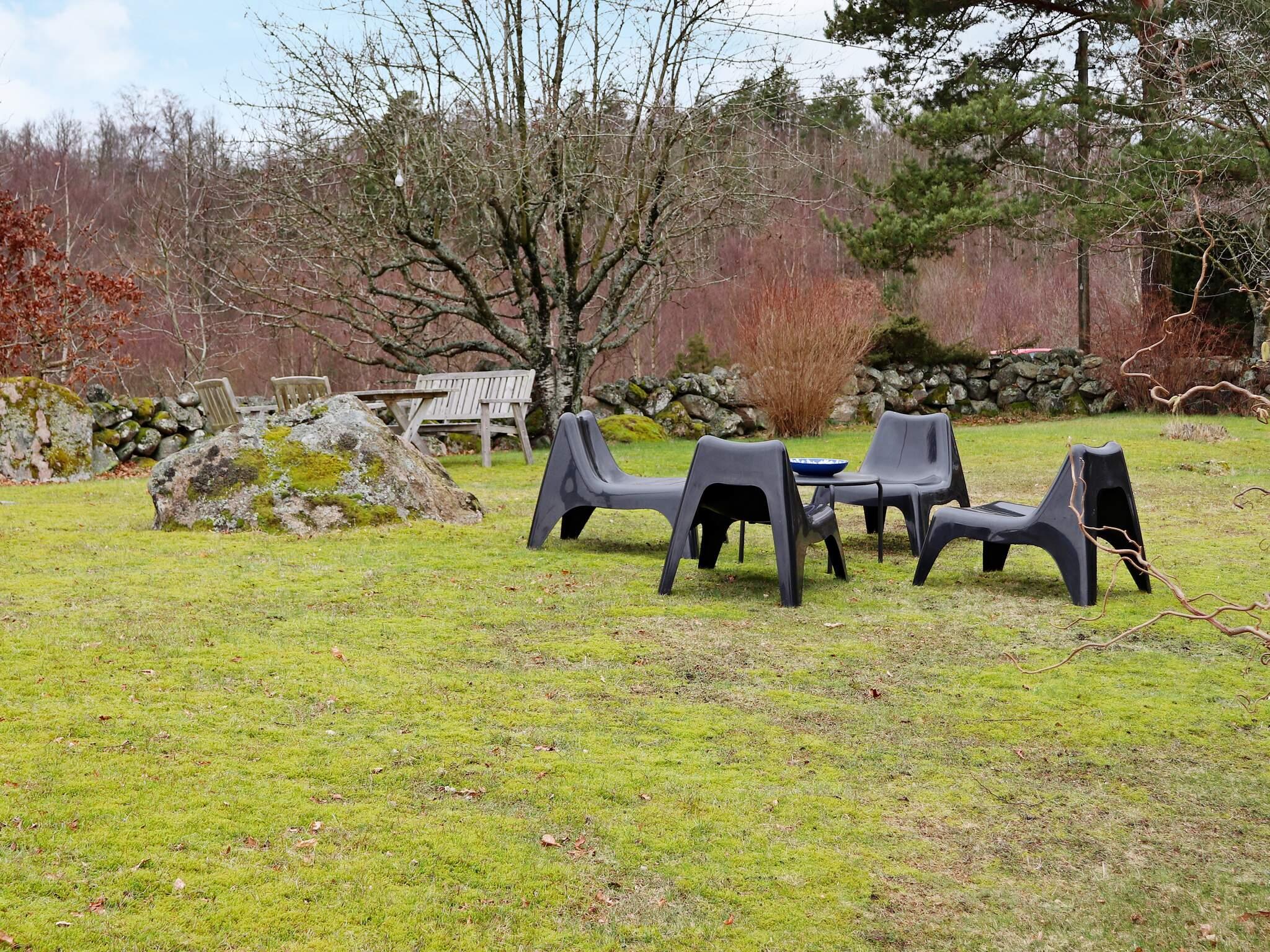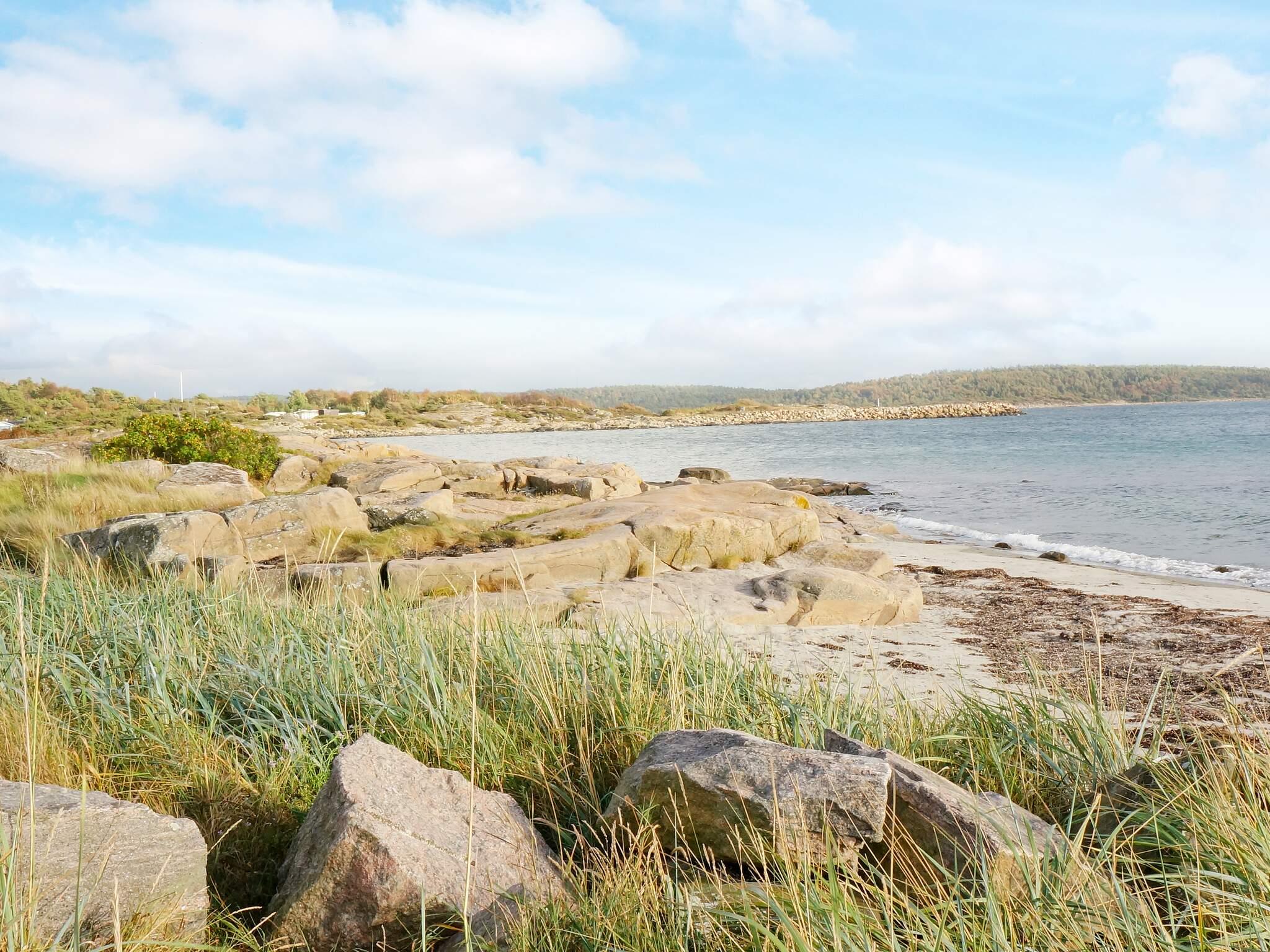 Stugan ligger högt i ett mindre stugområde, en kort biltur tar er ner till badstranden i Kärradal. Här finns både sandstrand och klippbad med brygga och badstege. Vid stranden ligger en populär restaurang och ett glasscafé.