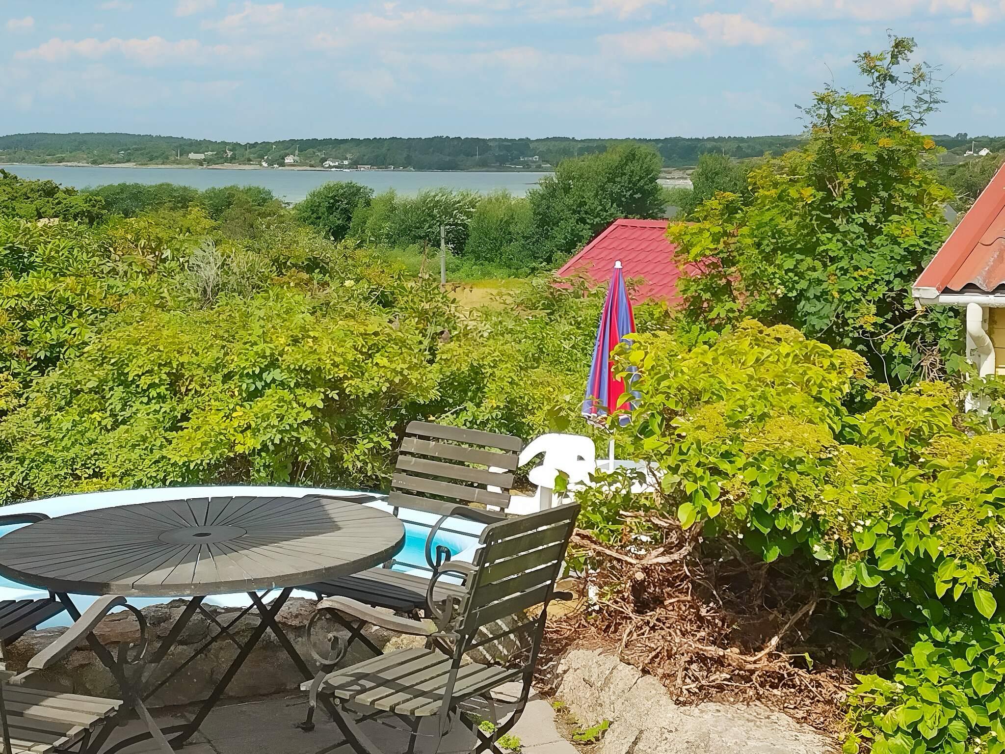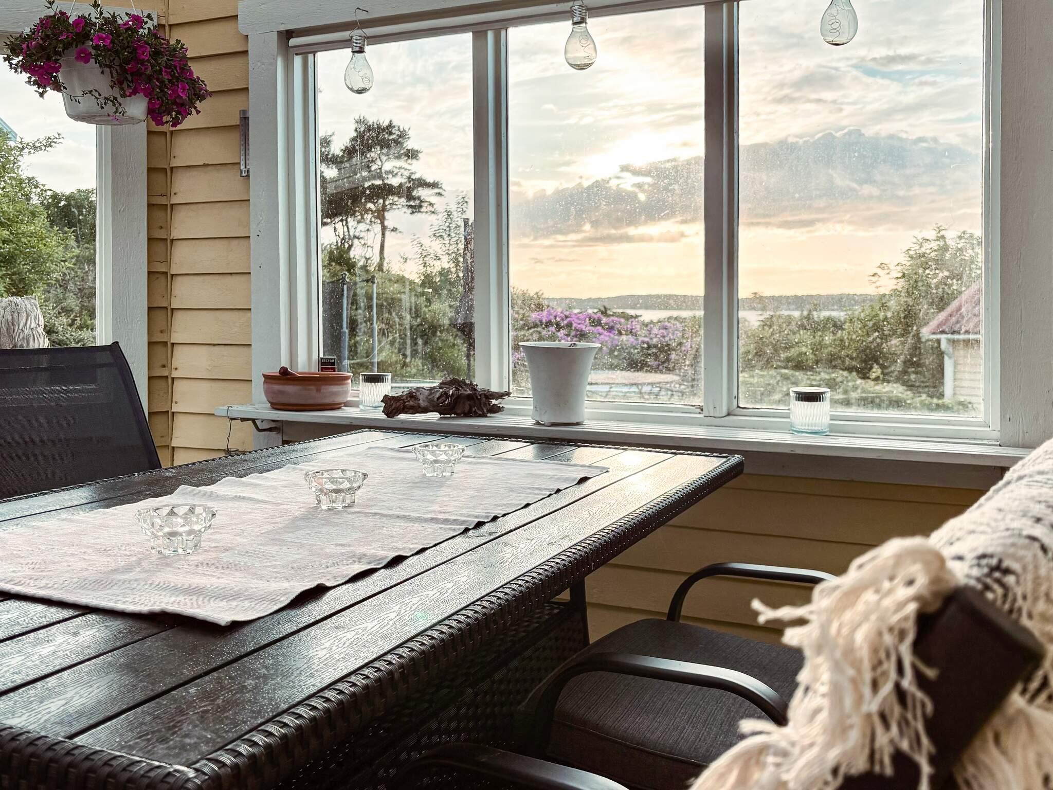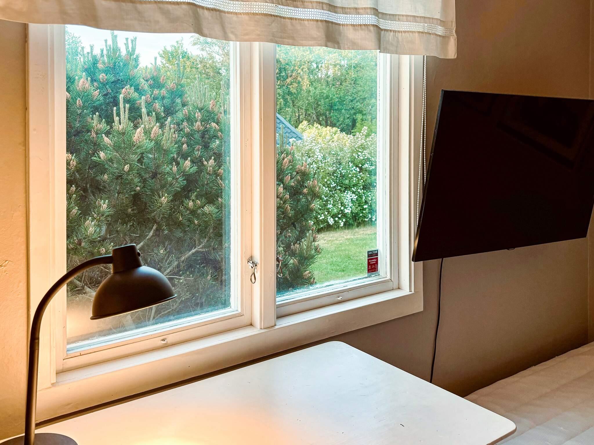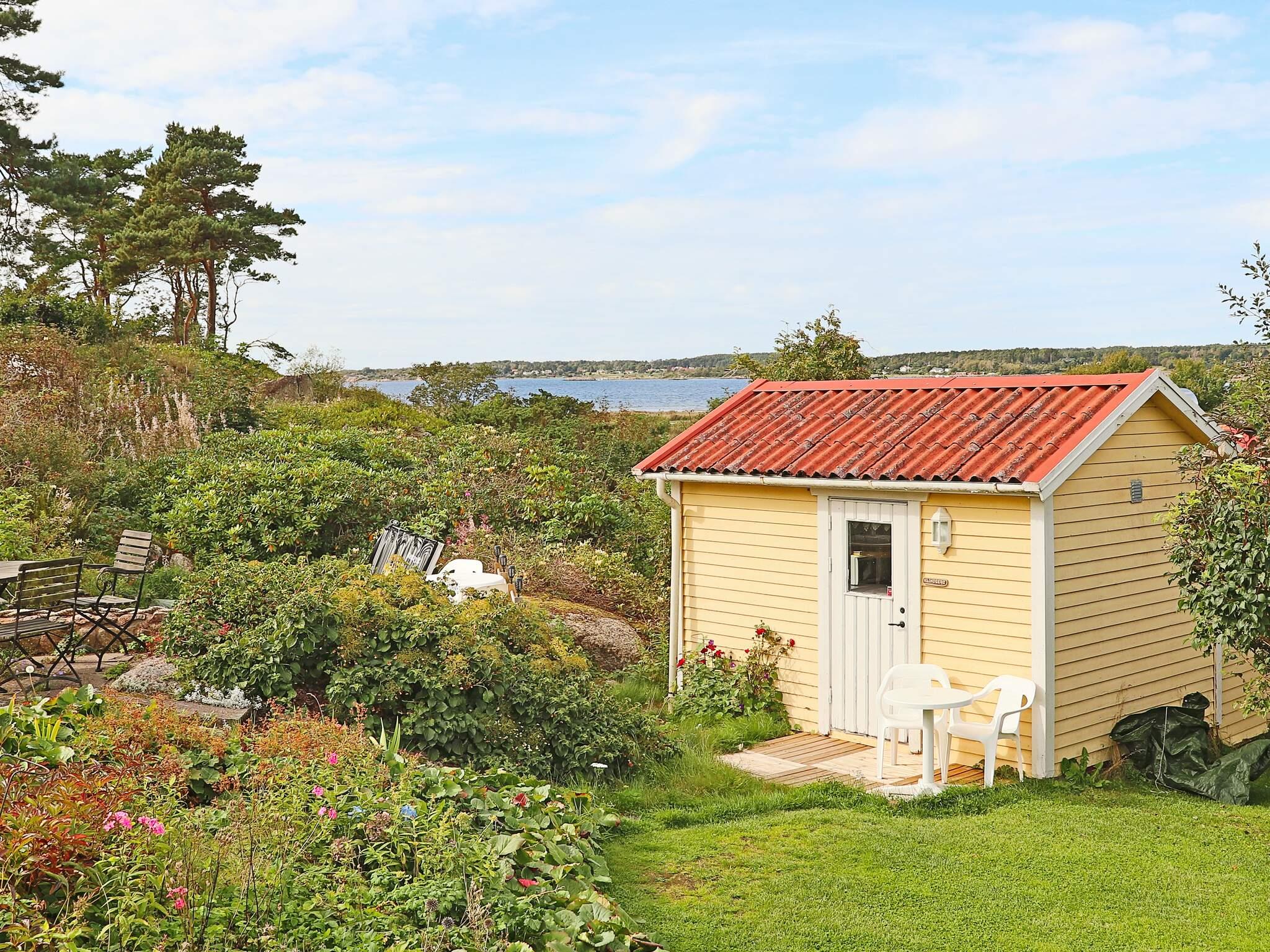 Från entrén har ni till vänster ett mindre sovrum med en enkelsäng och TV. Sedan har ni ett rymligt vardagsrum med bekväma sittmöbler, stor modern TV och en braskamin. Härifrån är det utgång till ett härligt inglasat uterum med matbord. Stugans kök är välutrustat och har matplats. Även här finns utgång till uterummet. Intill köket finns ett badrum med dusch och tvättmaskin som har ingång även utifrån. Här finns också ett sovrum med en dubbelsäng (140cm). Ett sovrum är vidbyggt stugan, har två enkelsängar och ingång utifrån. Gäststugan är inredd med en bäddsoffa för två personer och har tvättfat, micro samt TV. Totalt är boendet för 6 personer. I hela stugan finns gratis wifi. Tomten är grönskande och kuperad med många härliga små sittplatser och solstolar. Ni har en härlig utsikt över stugområdet och havet.