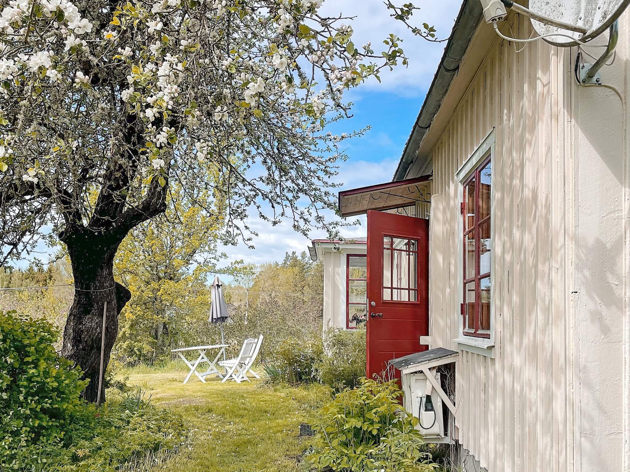 Du välkomnas in i grönskade trädgård med vackert lusthus. Bakom den röda entrédörren finns en ljus rymlig hall. Direkt till vänster är köket som har det mesta man kan behöva, även en trevlig gammal järnspis. Intill detta är husets finrum med en kakelugn. Till höger från entrén finns en liten sovalkov. Intill sovalkoven ligger husets badrum med wc, handfat, duschkabin och tvättmaskin.